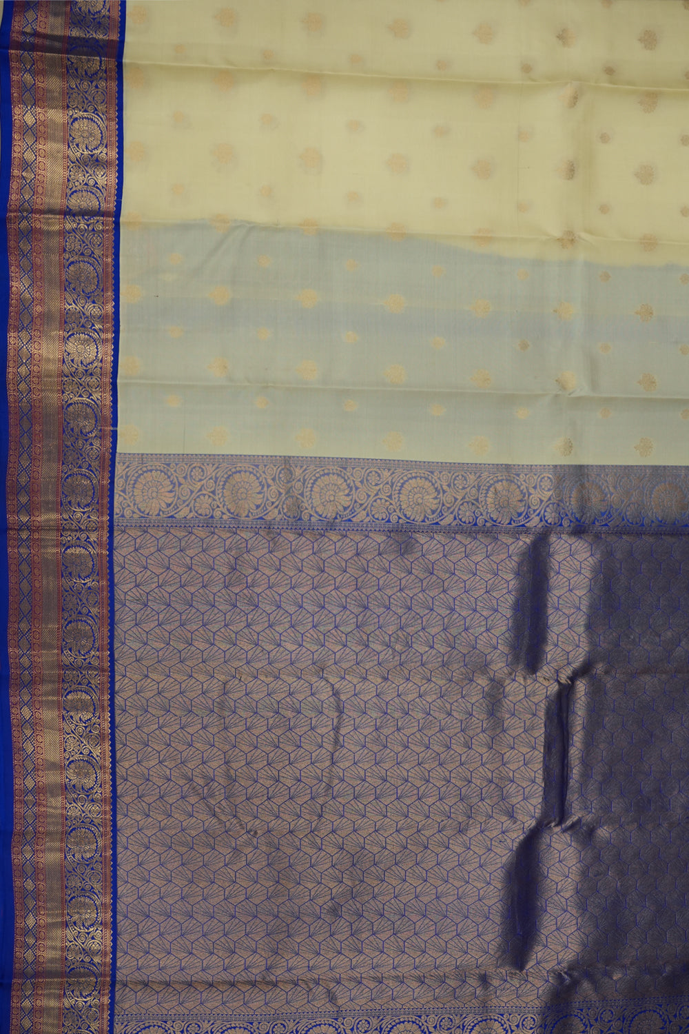 Traditional Kanjivaram Silk Saree in Off-White with Blue Border