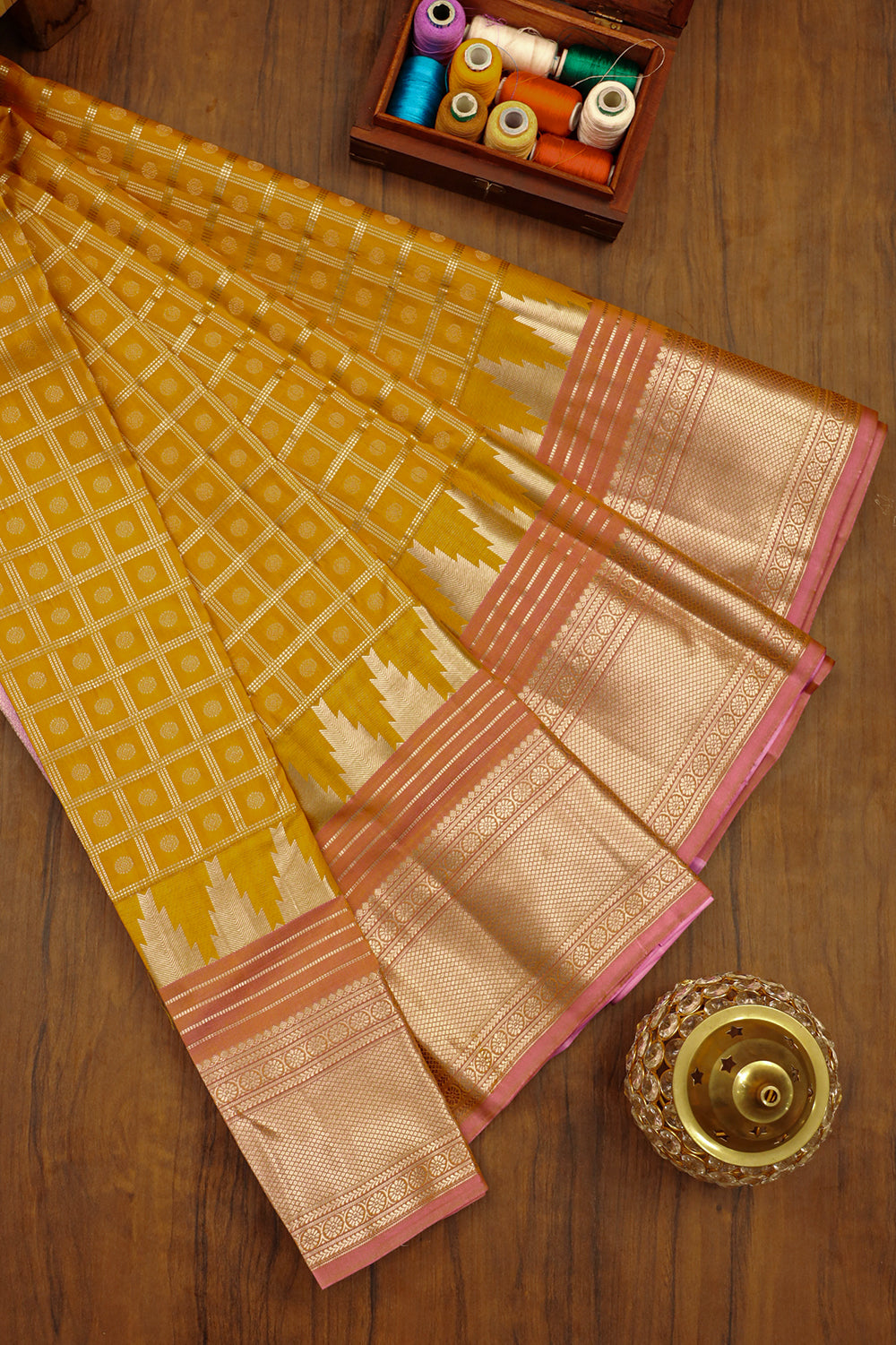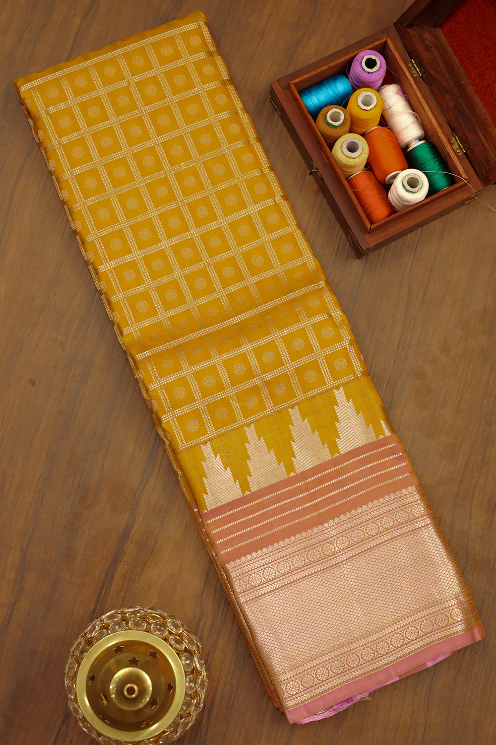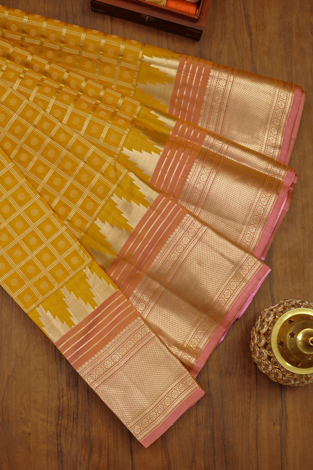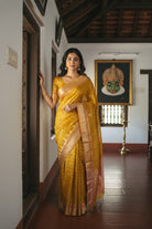 Vibrant Yellow Silk Saree with Pink Border