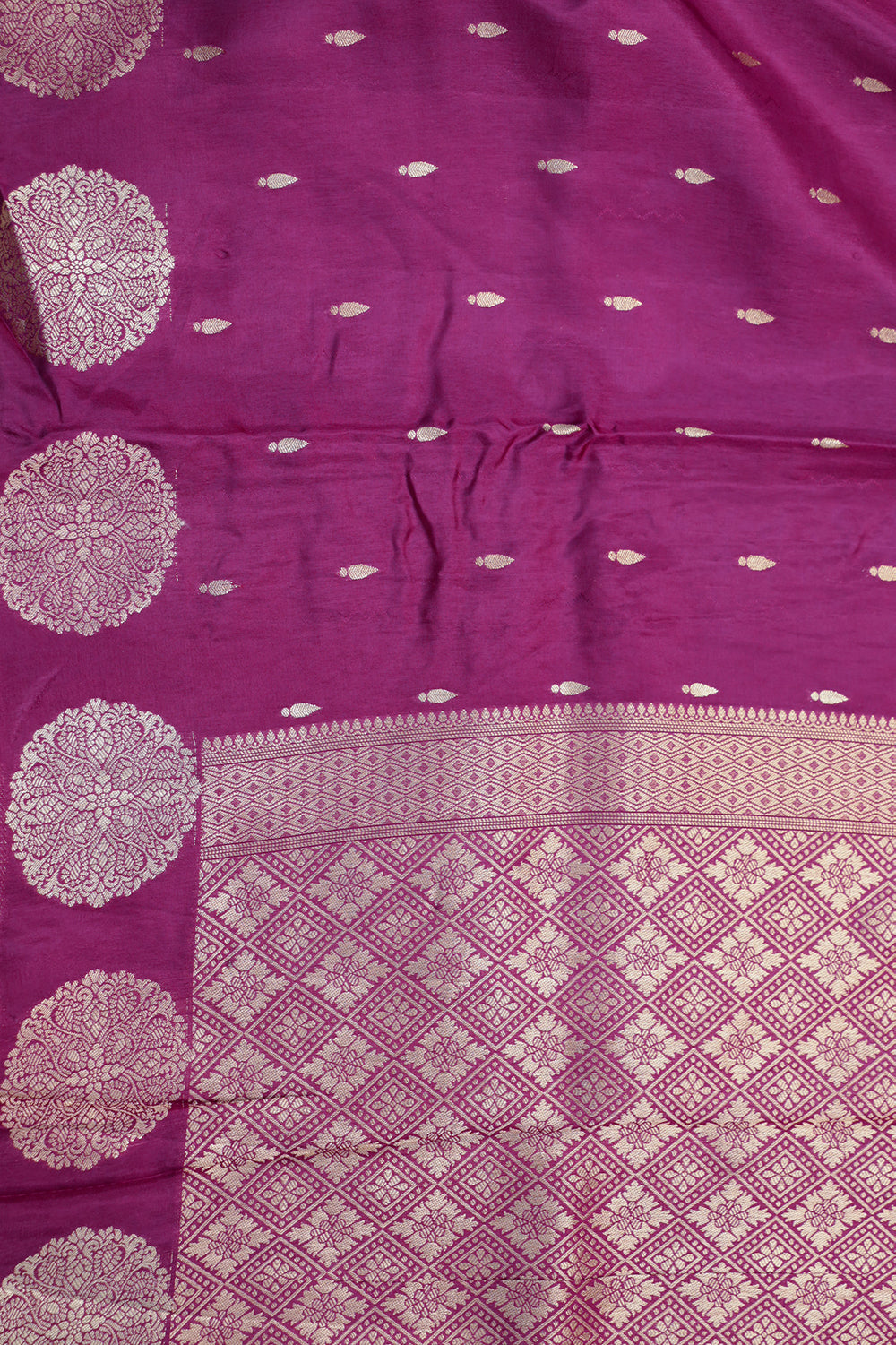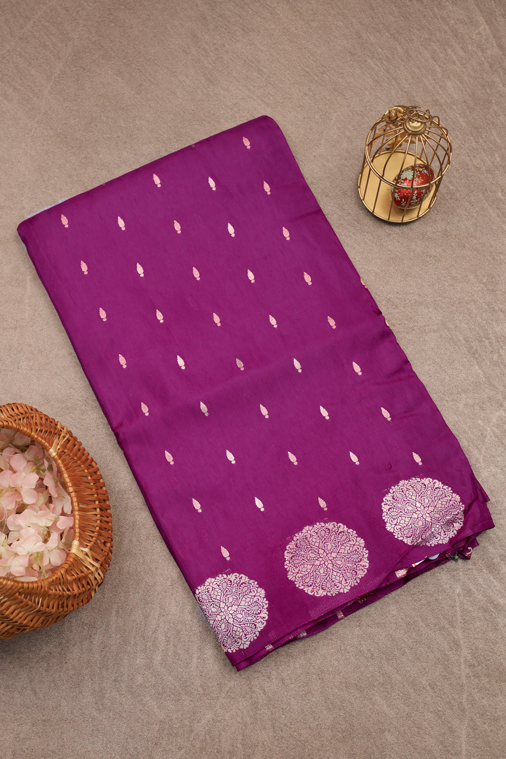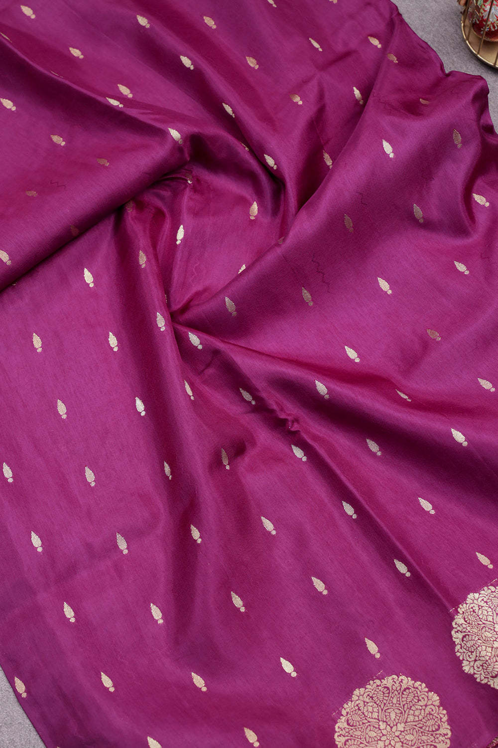 Purple Banaras Saree with Golden Buttas