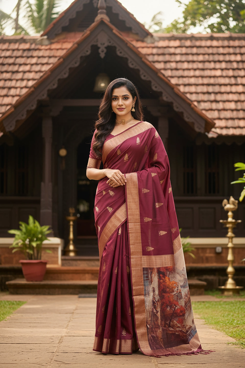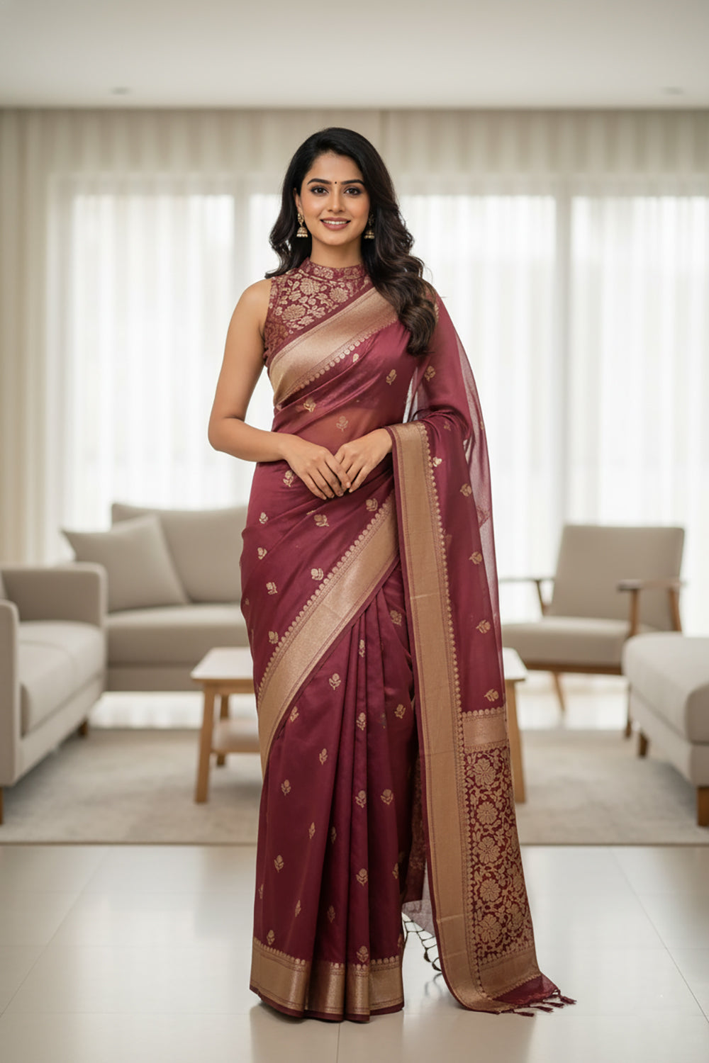 Maroon & Gold Banaras Silk Saree