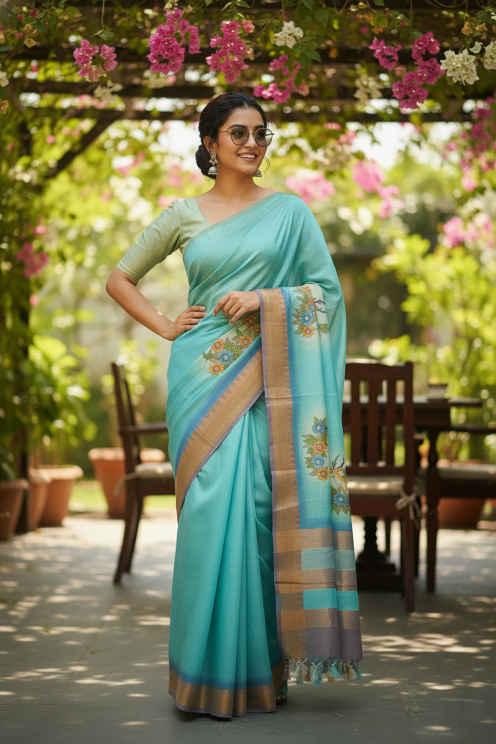 Deep Pink Pure Silk Saree with Gold Leaf Embroidery