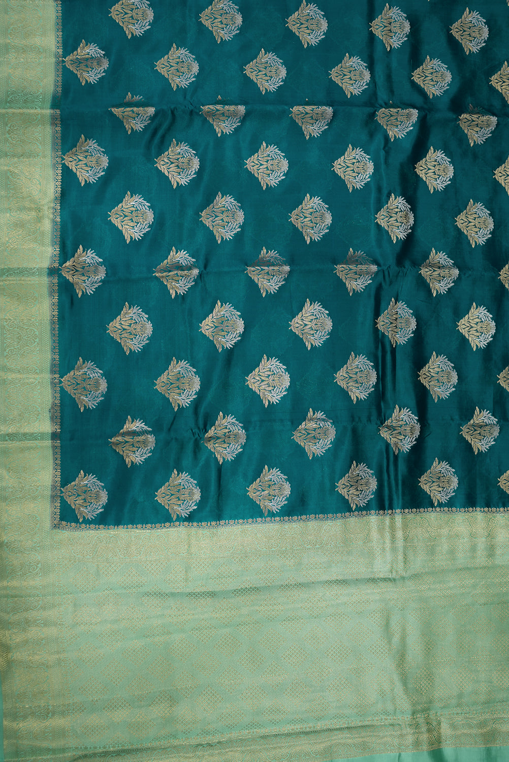 Emerald Green with Silver Zari Raw Silk Saree