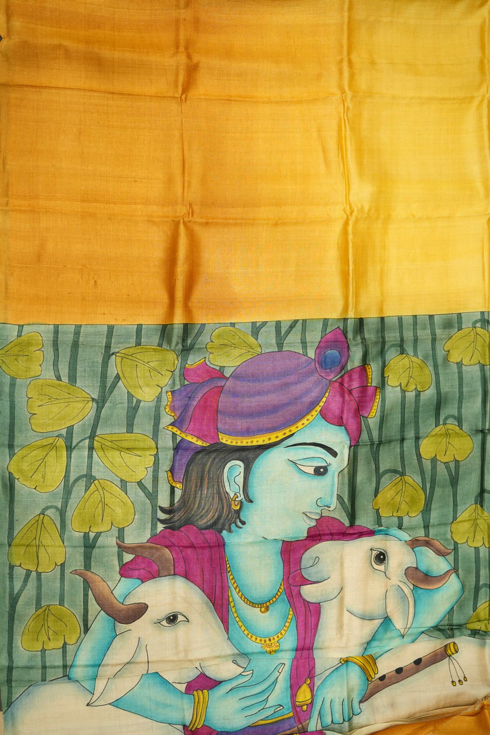 Maroon Mysore Silk Saree with Orange and Gold Border