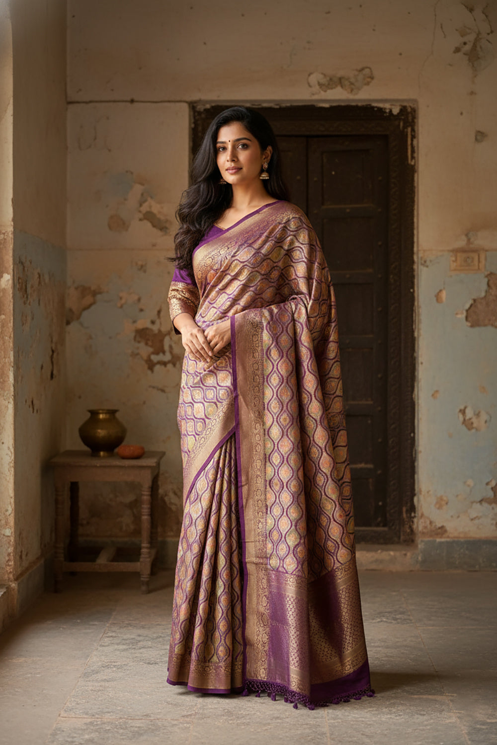 Rich Chocolate Brown Silk Saree with Woven Accents