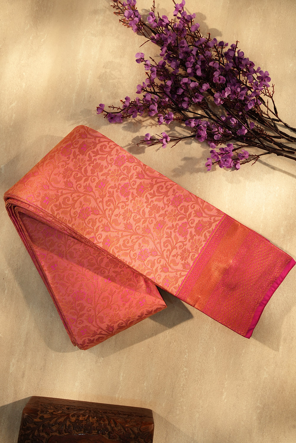 Radiant Peach-Pink Kanjivaram Silk with Floral Brocade