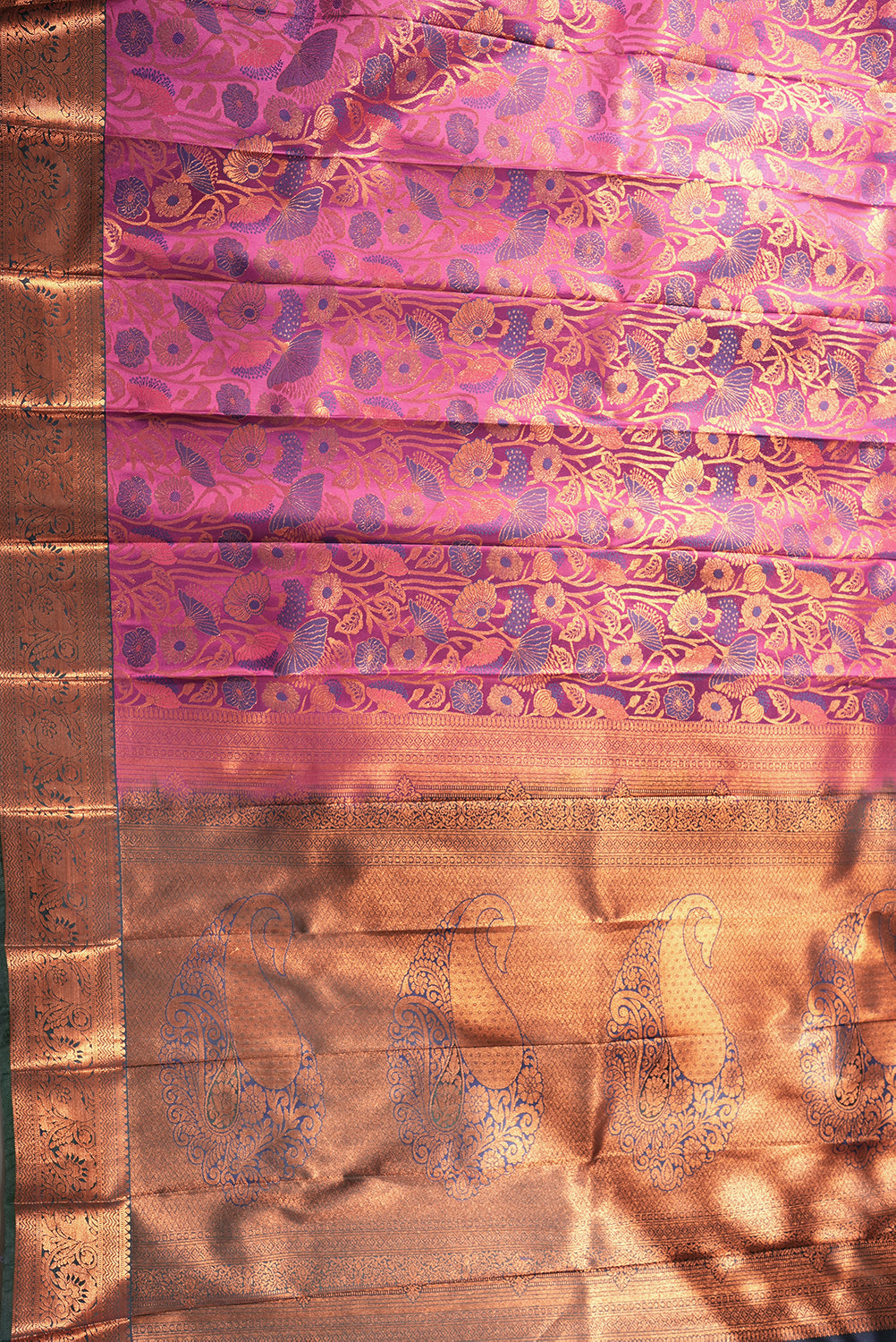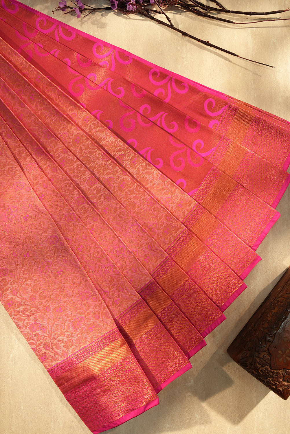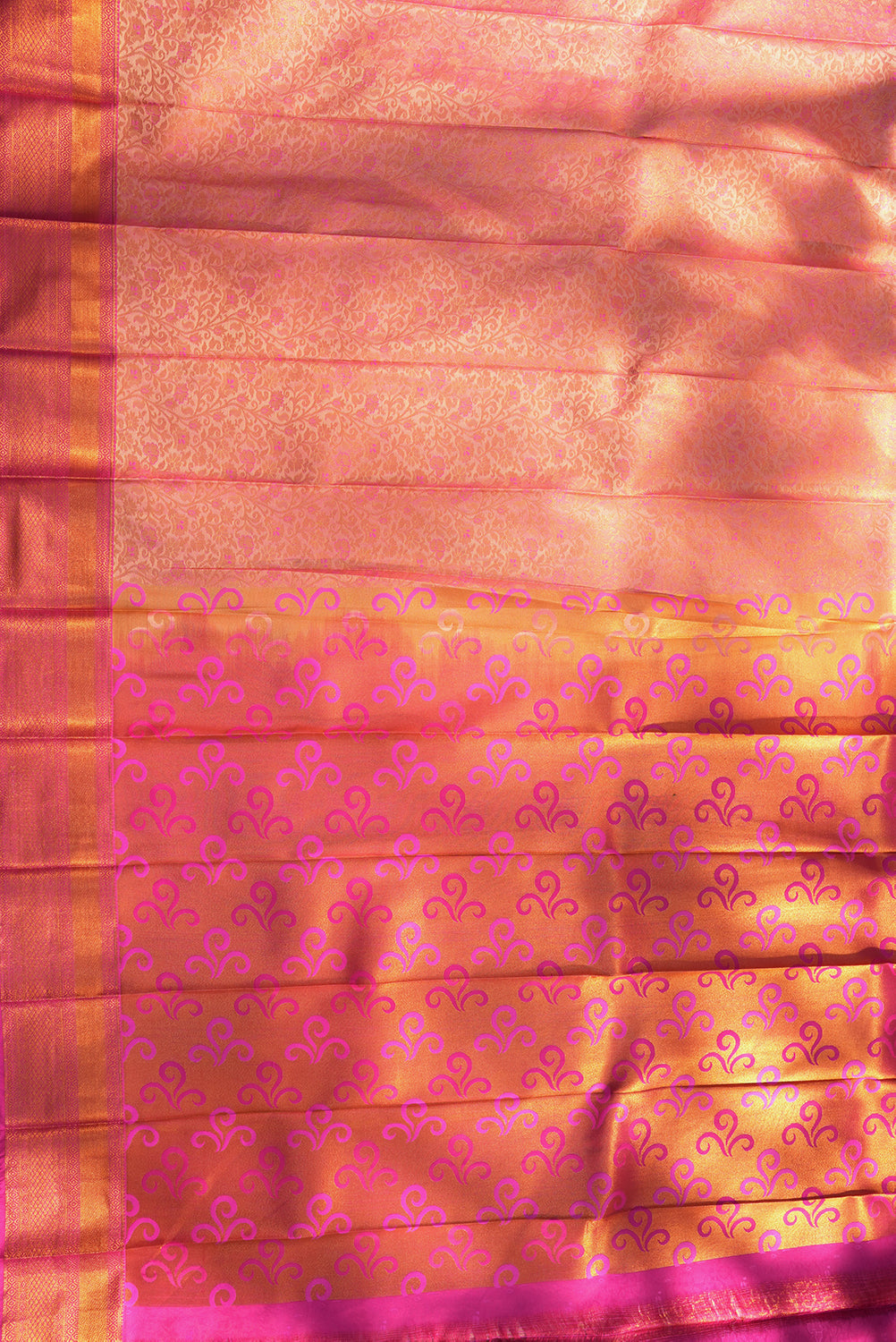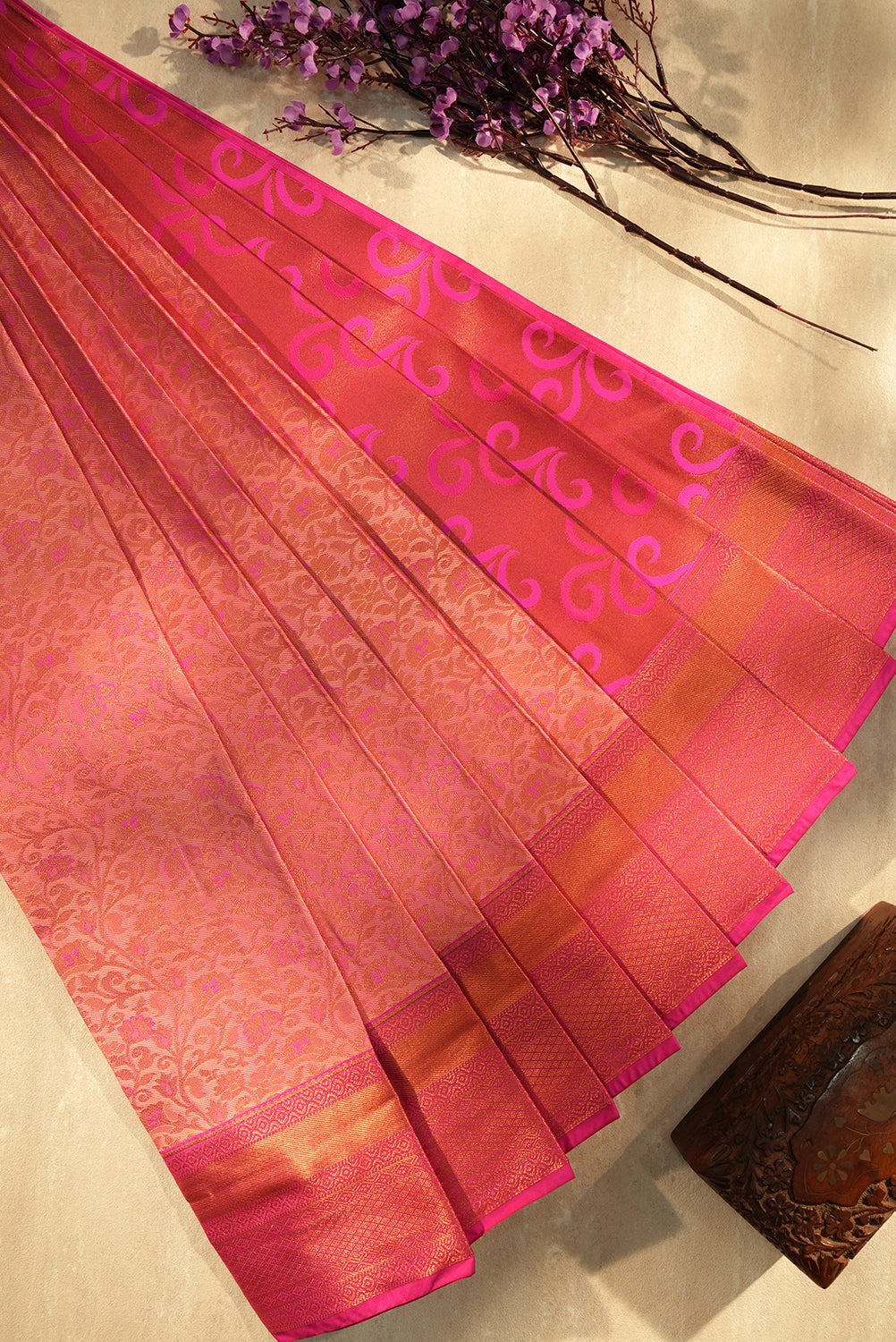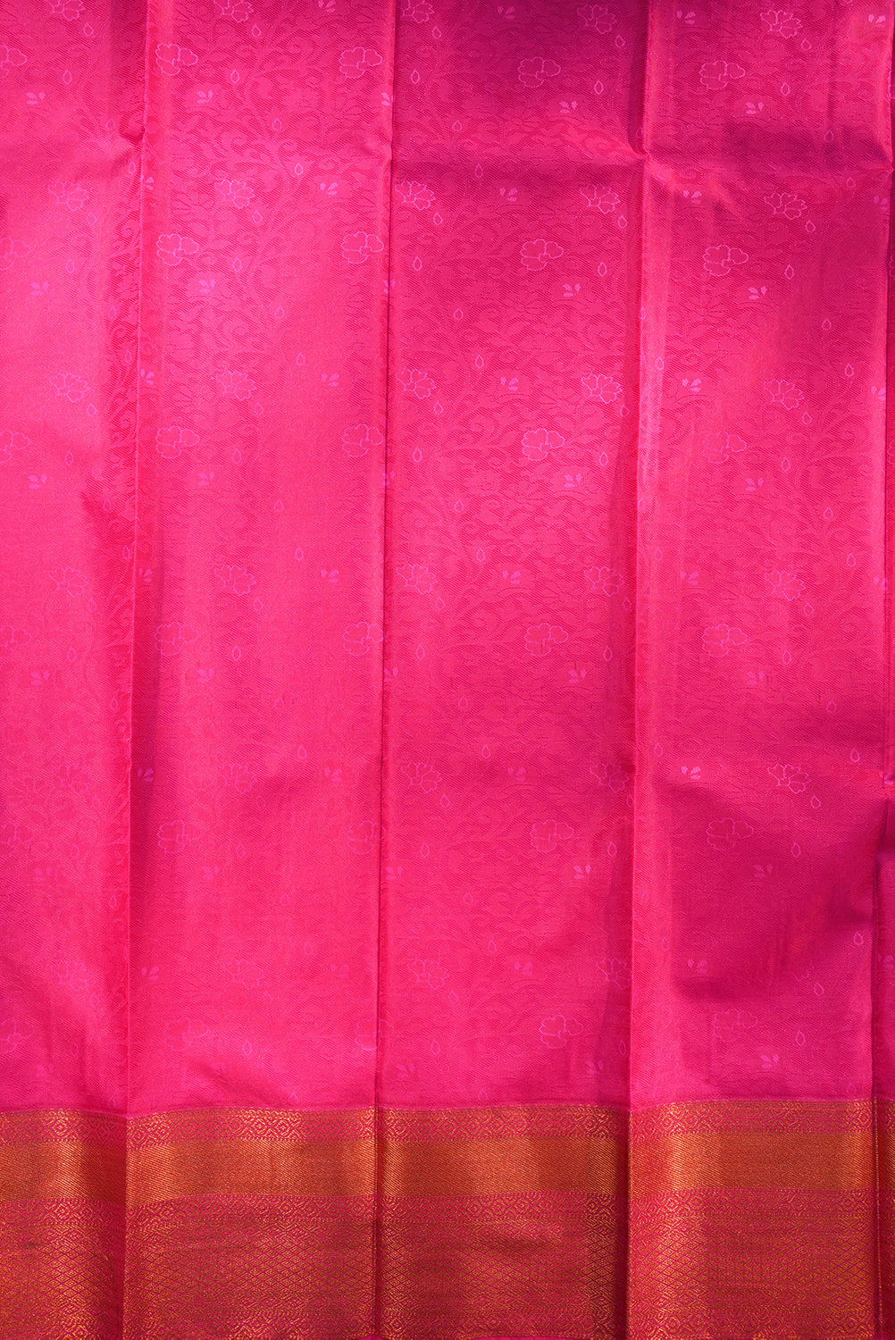 Radiant Magenta Silk Saree with Copper Zari Floral Motifs