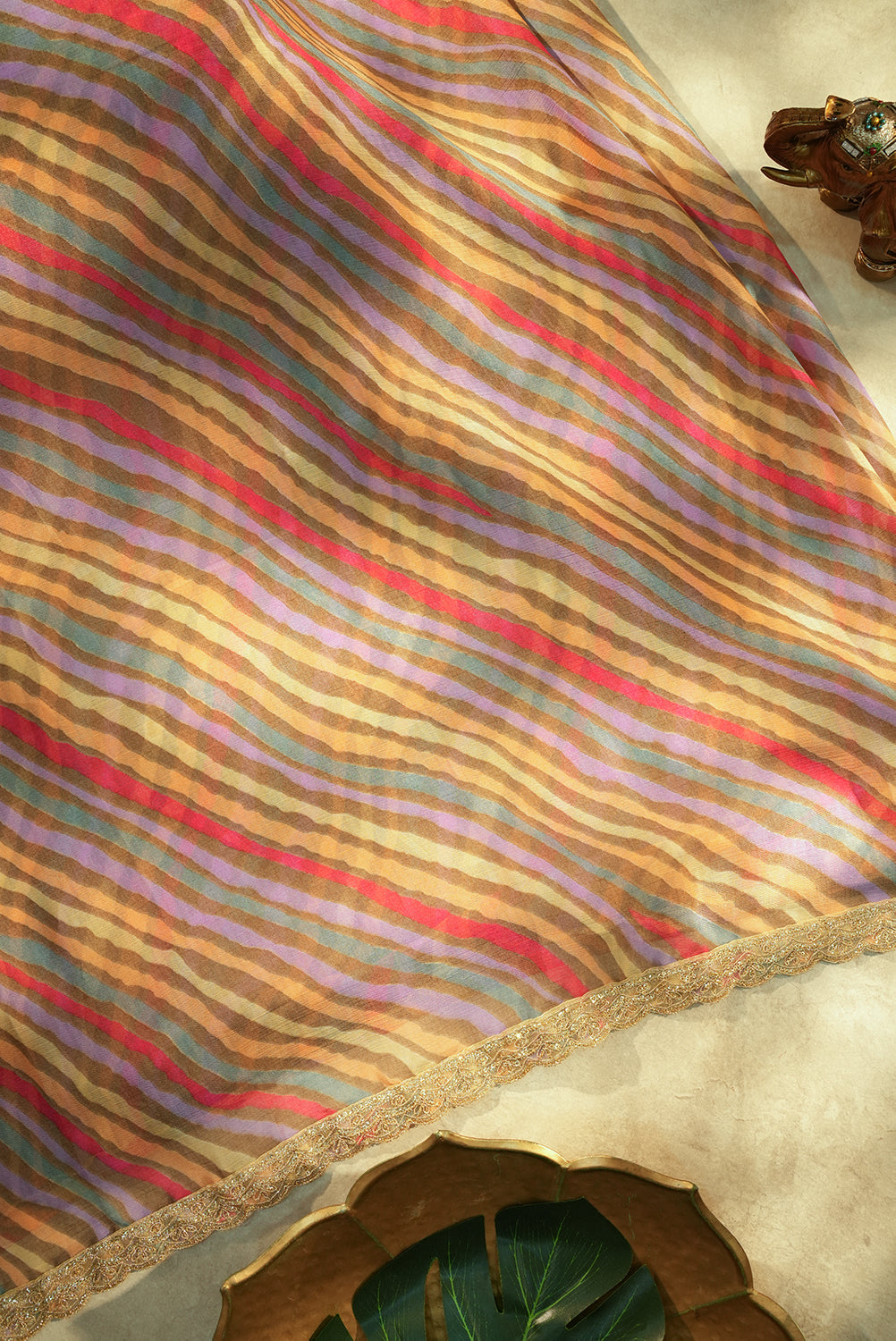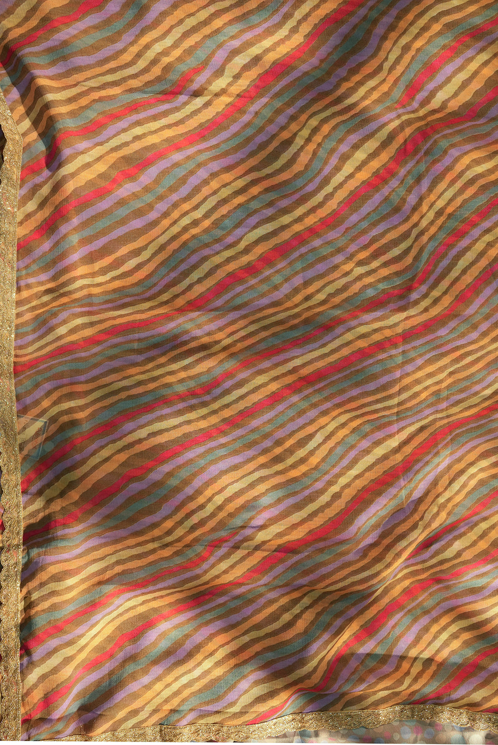 Multicolored Wavy Striped Chiffon Saree