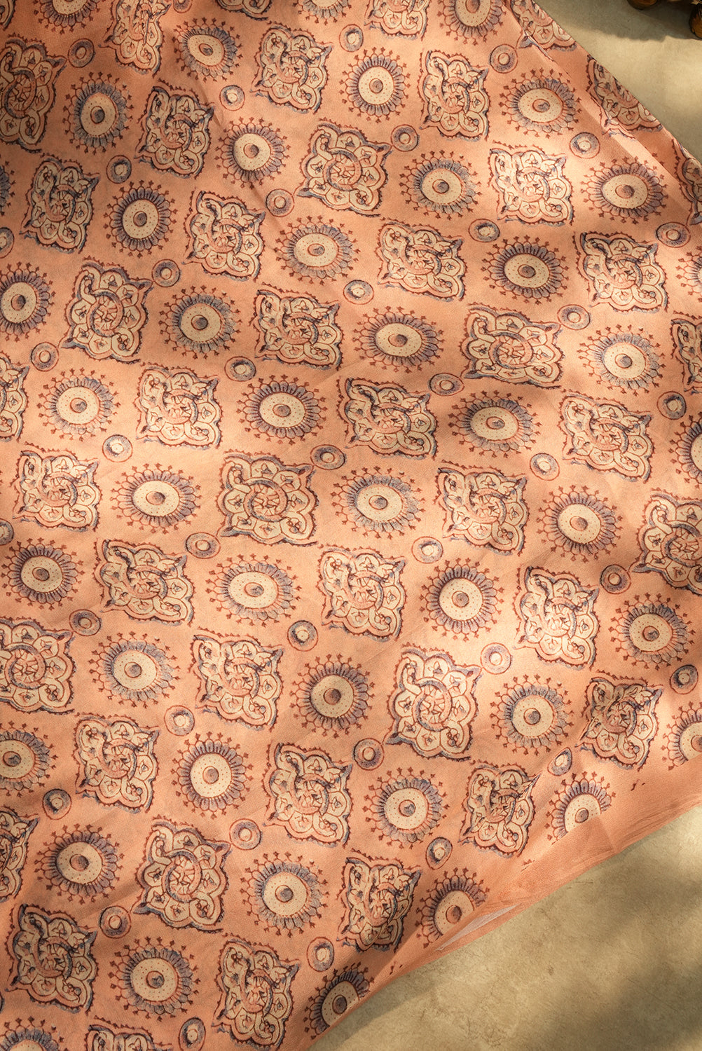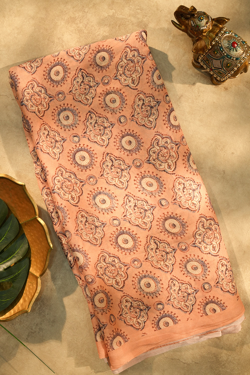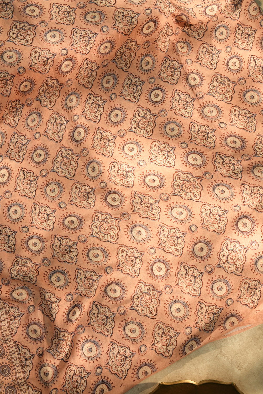 Soft Peach Chiffon Saree with Stylized Block Prints