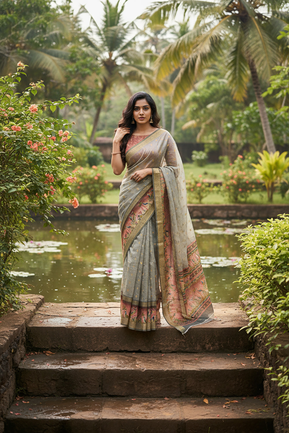 Dusty Rose Linen Saree