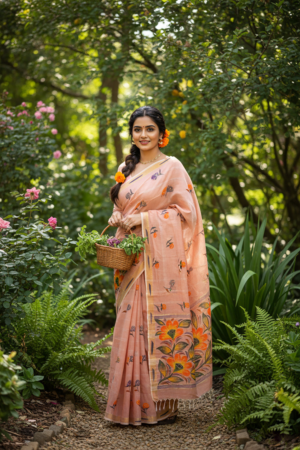Peach and Gold Banarasi Silk Saree