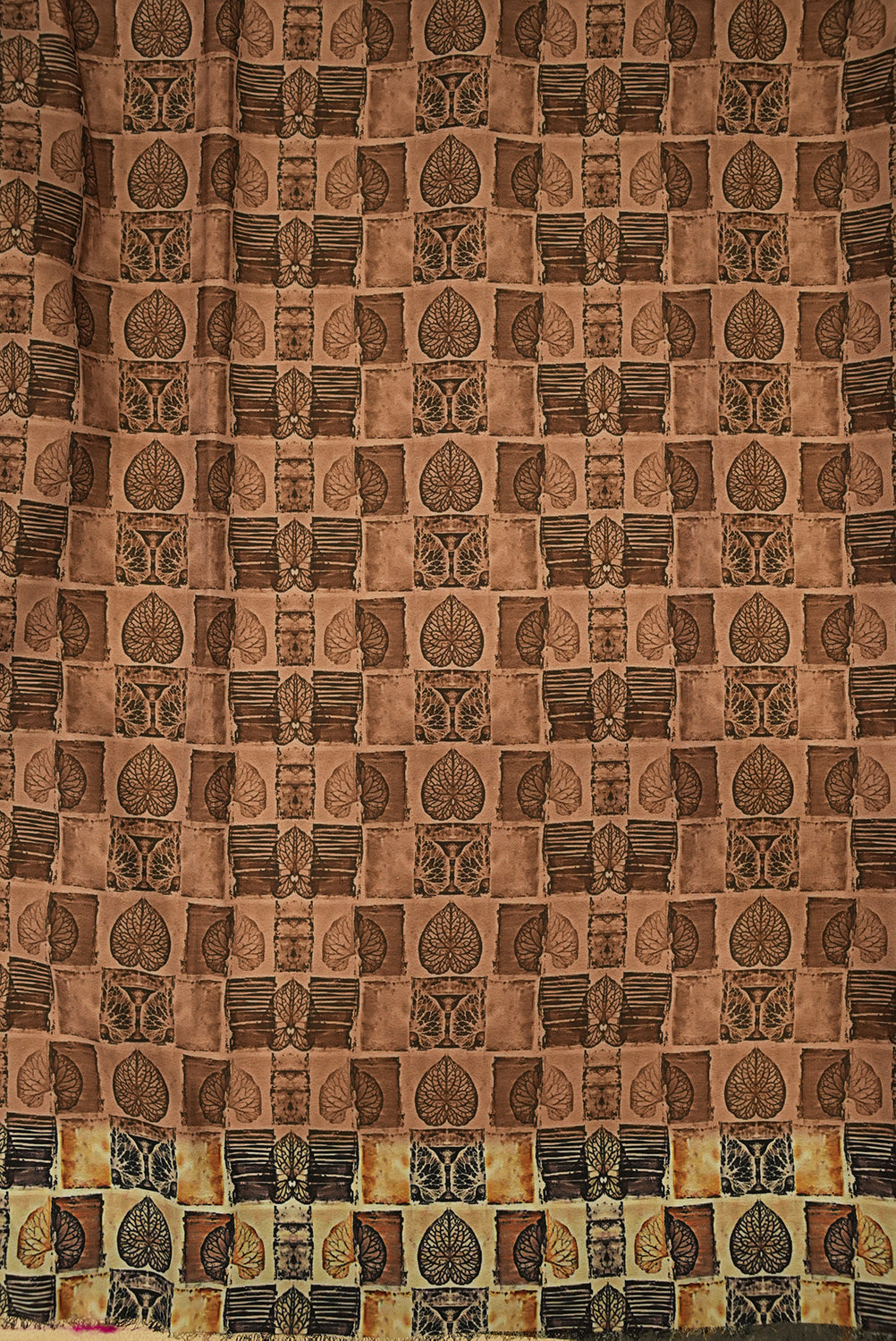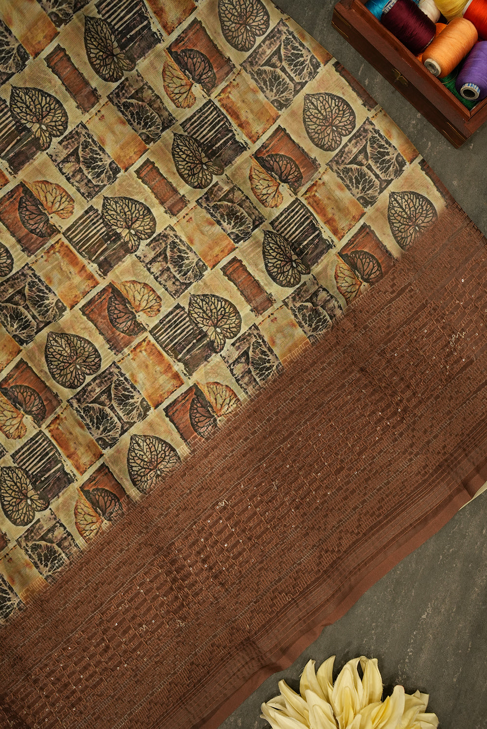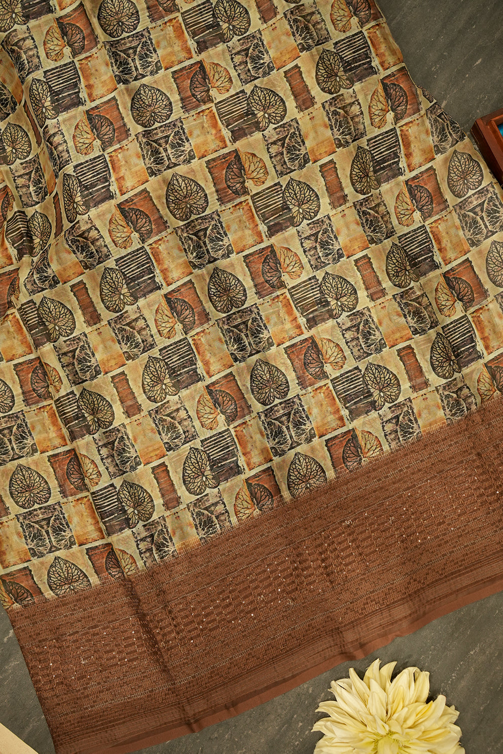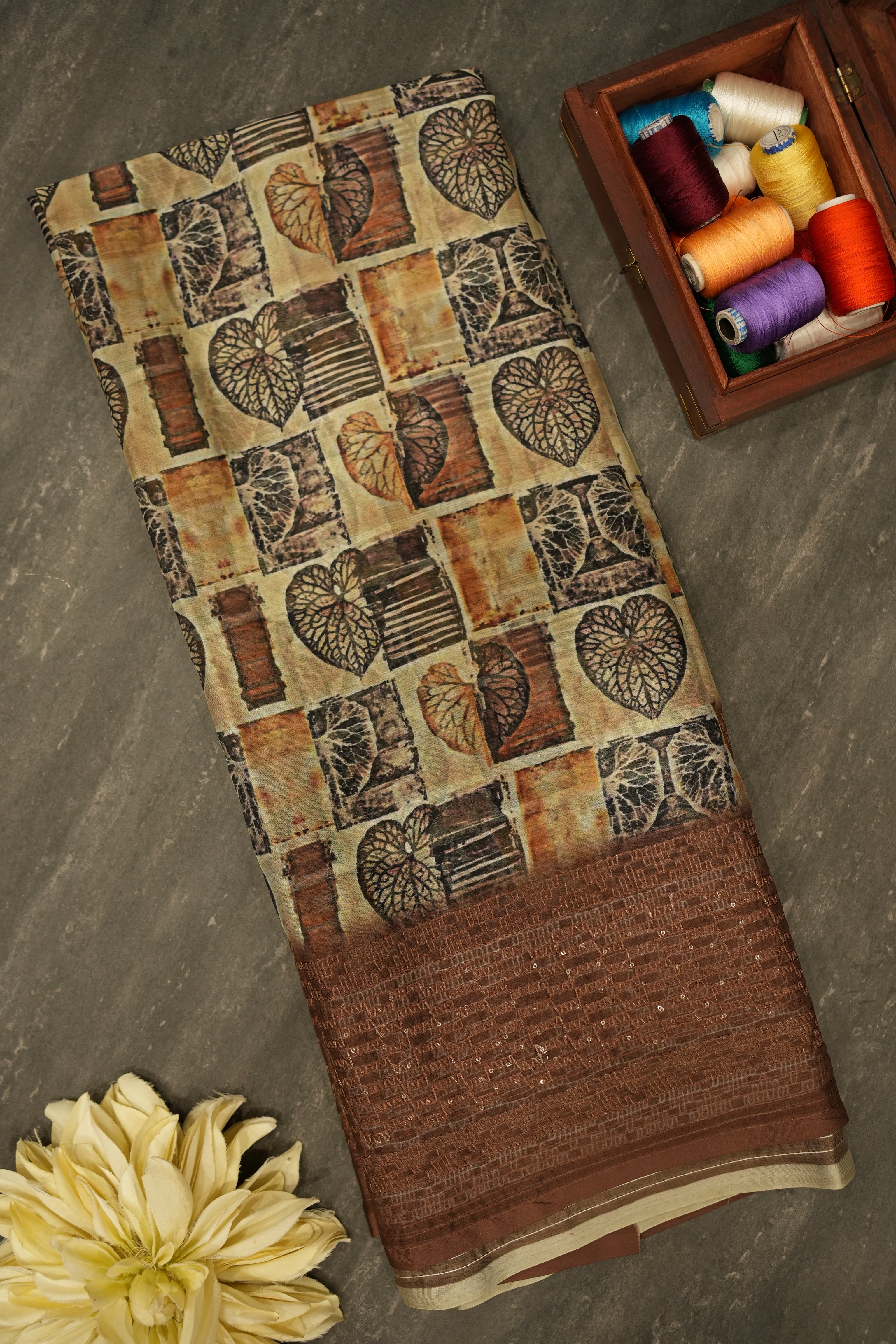 Beige & Copper Chiffon Saree with Leaf Motifs