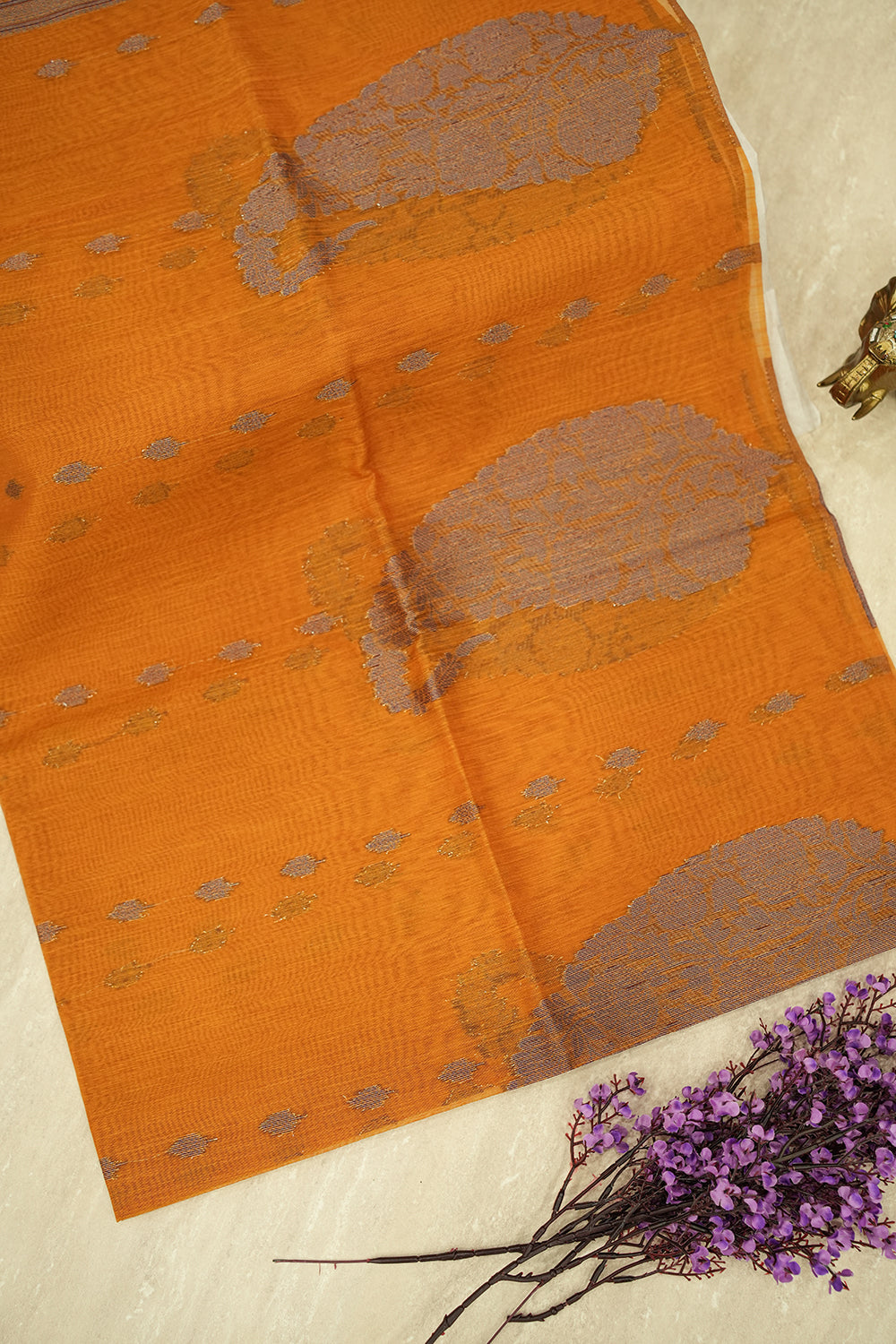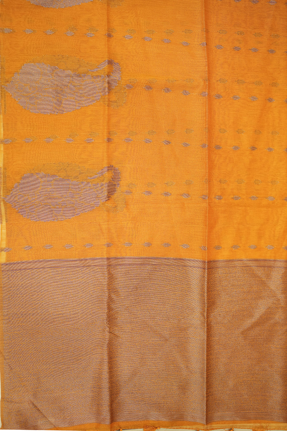 Golden Mustard Linen Saree with Abstract Grey Weave