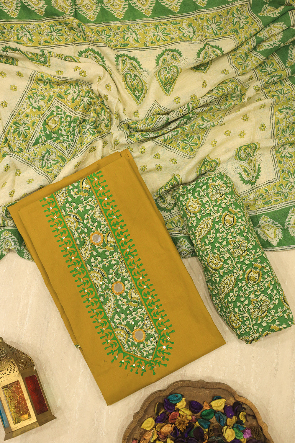 Embrace timeless elegance with this beautiful unstitched salwar suit material, perfect for the auspicious Aadi month festivities in Madurai. The sophisticated colour combination and traditional craftsmanship make it an ideal choice for temple visits, family gatherings, or refined daily wear.