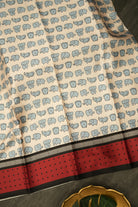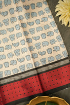 Ivory Semi-Satin Tussar Saree with Elephant Print