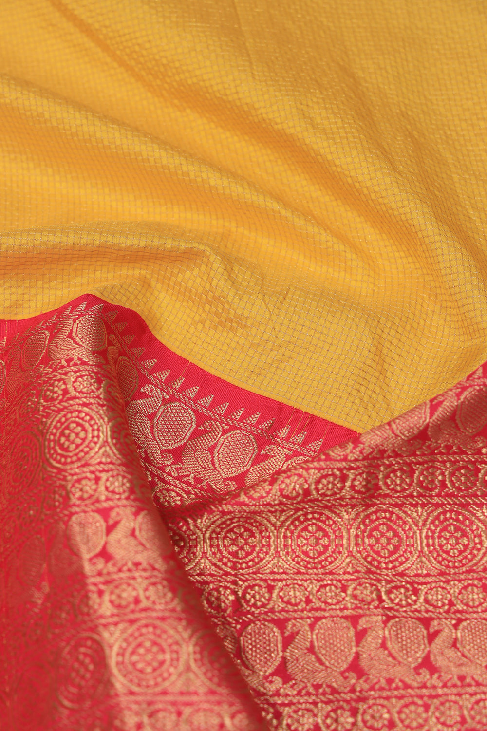 Lemon yellow vairaoosi with rani pink traditional border silk fabric
