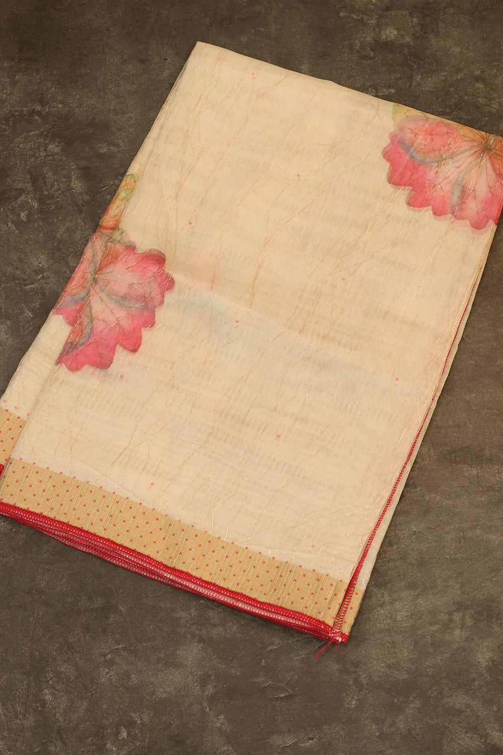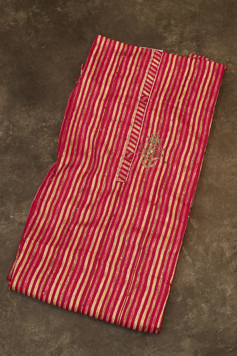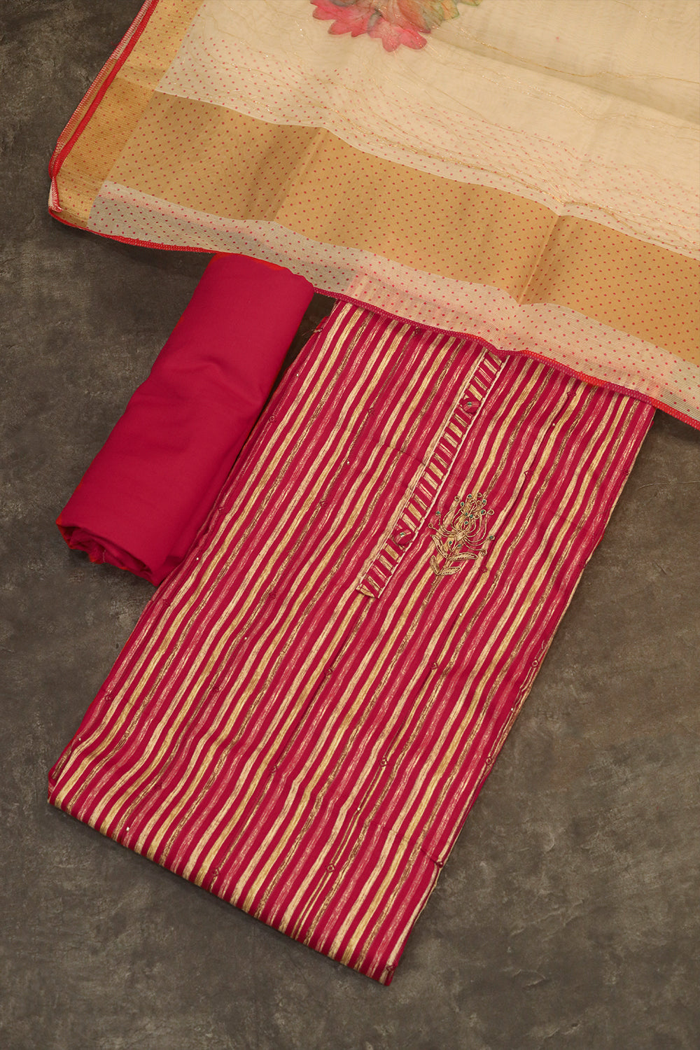 Magenta Cotton Salwar material having a wonderful brown lines and designer floral. Cream with unique floral designs lovely dupatta.