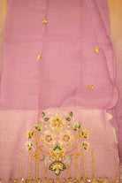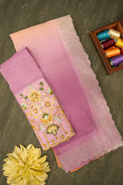 This stunning crushed saree features a beautiful ombre effect, blending soft shades from light pink to lavender and purple. The crushed texture of the fabric gives it a unique, fluid drape. The pallu and border are richly adorned with an intricate, multi-colored floral embroidery that includes delicate bead and thread work, adding a touch of sophisticated shimmer. This saree is a perfect blend of modern design and traditional craftsmanship, ideal for special occasions where you want to make a graceful and eye-catching statement.
