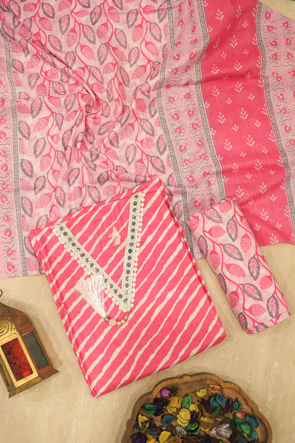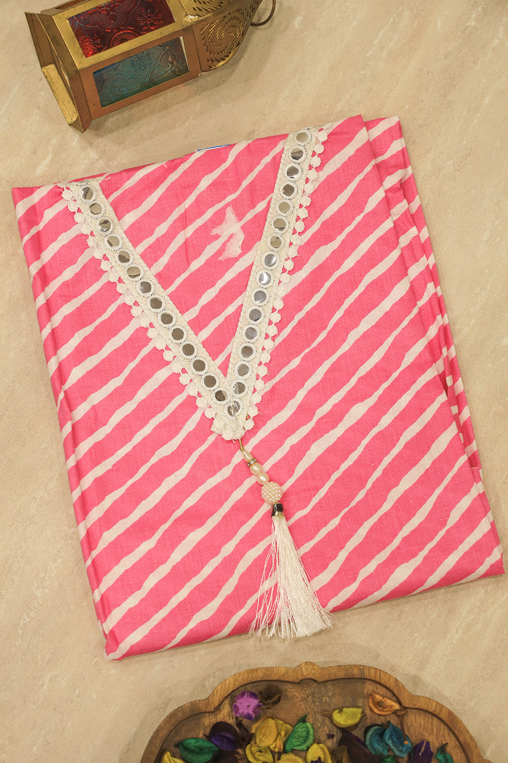 Pink Leheriya Print Salwar Material with Mirror Work Lace
