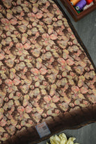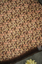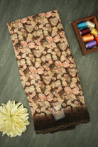 This beautiful chiffon saree features a mesmerizing, abstract print in soft shades of light pink, beige, and brown, creating a sophisticated, watercolor-like effect. The lightweight, airy fabric drapes elegantly, while the solid dark brown border with subtle detailing adds a grounded, chic finish. This saree is perfect for both casual outings and semi-formal events, offering a blend of modern artistry and effortless grace.