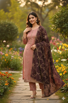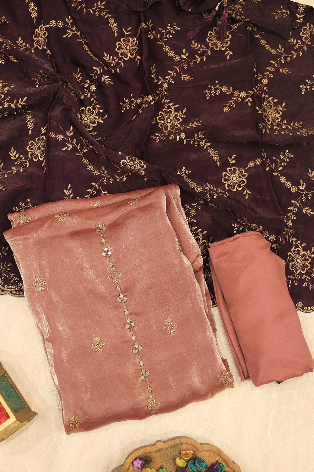 Rose Salwar Material with Mirror Work and Embroidered Dupatta