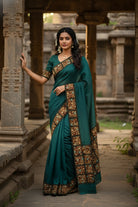 Teal Green and Brown Handloom Tussar Saree