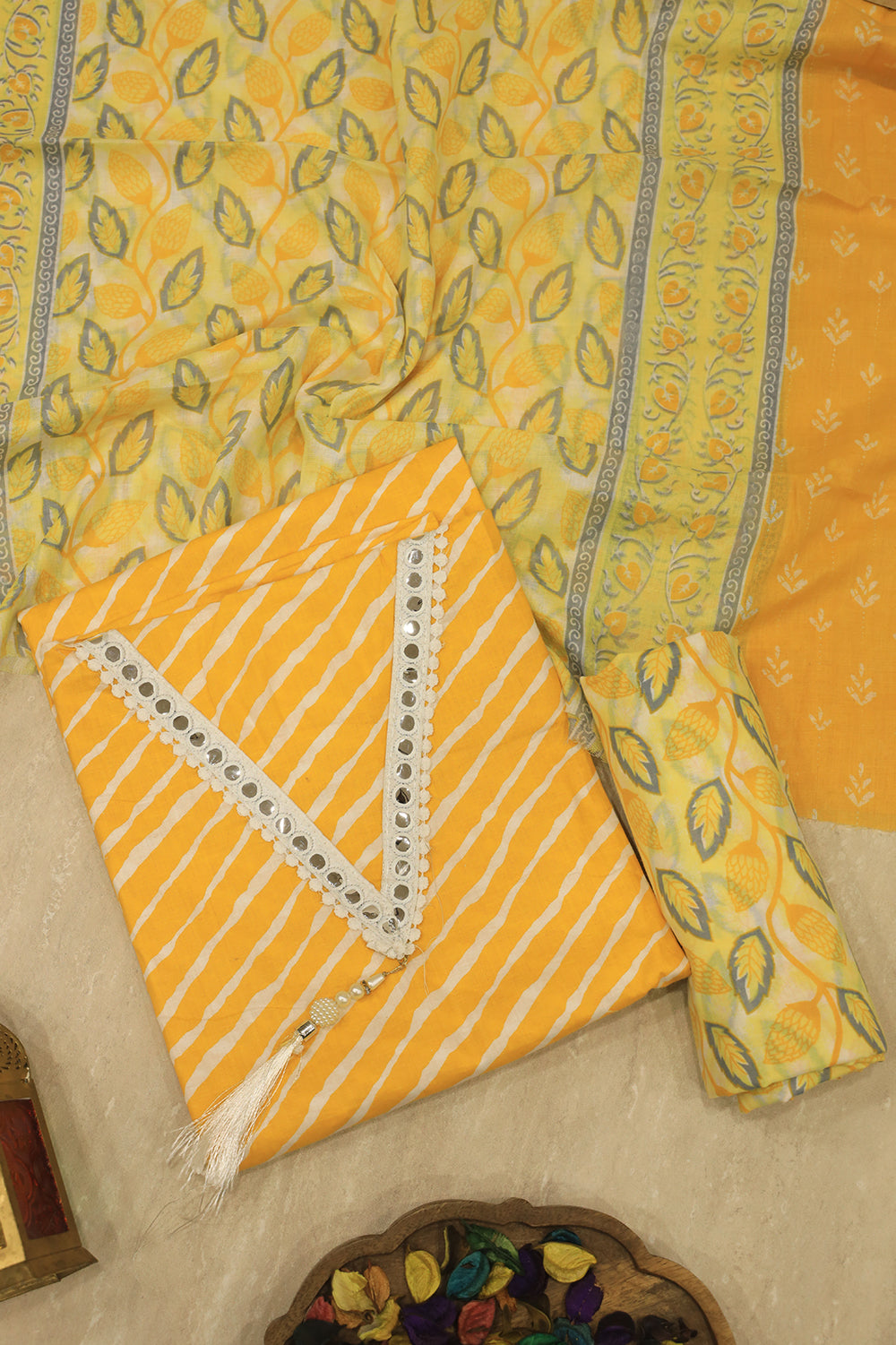 Brighten up your wardrobe with this charming unstitched salwar suit material. This ensemble captures a blend of traditional prints and delicate craftsmanship, making it an excellent choice for festive occasions and casual daily wear.