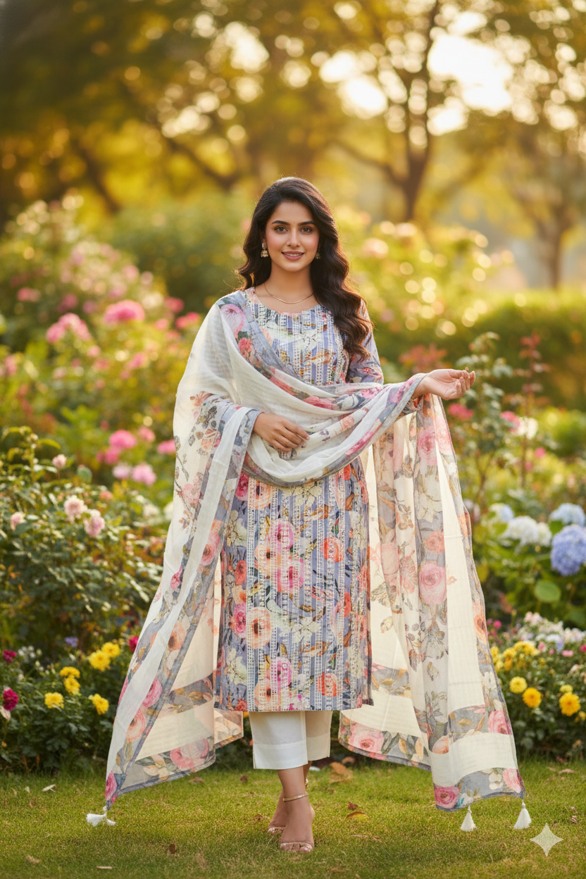 Rustic Elegance Printed Salwar Suit with Embellished Dupatta