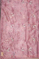This delicate rose pink saree is crafted from soft organza fabric, featuring exquisite floral embroidery. The design incorporates intricate silver zari work and shimmering sequins, with highlights of white and deep pink beads, creating a beautiful and elegant look. Unstitched blouse attached.