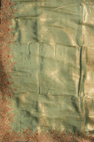 Draped in the ethereal elegance of a sea blue tissue Kanjivaram, this saree is a statement of understated luxury. The delicate fabric is subtly woven with gold, complemented by an intricate, heavy gold zari border and detailed embroidery, perfect for weddings and grand festivities. Unstitched blouse attached.