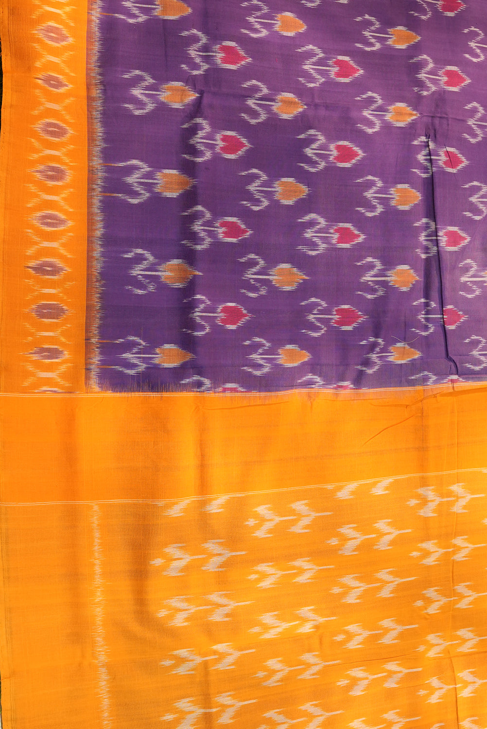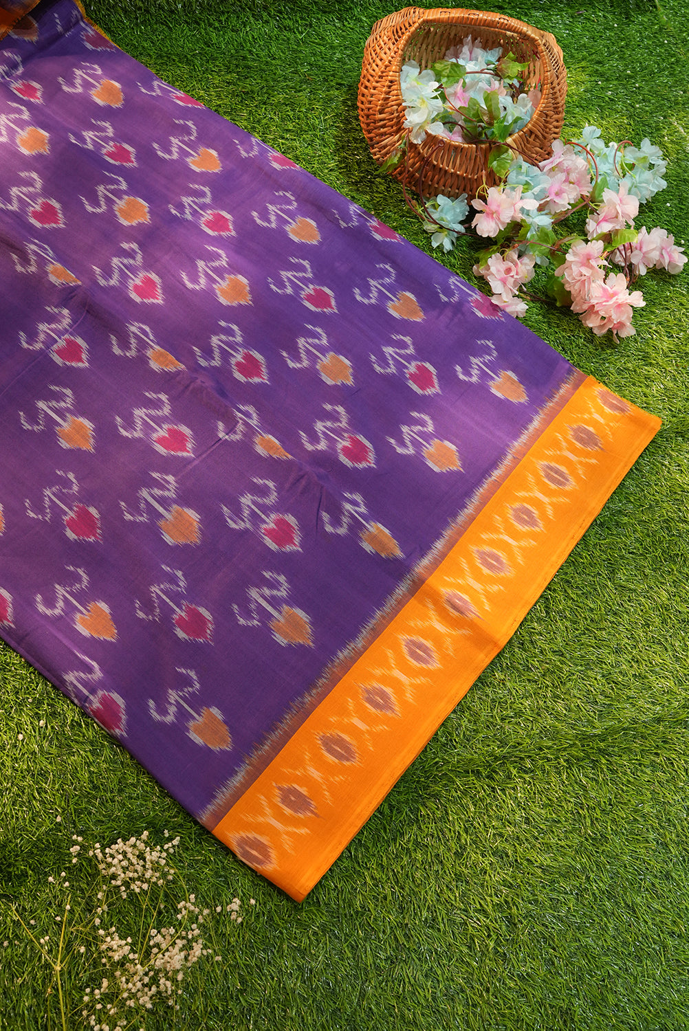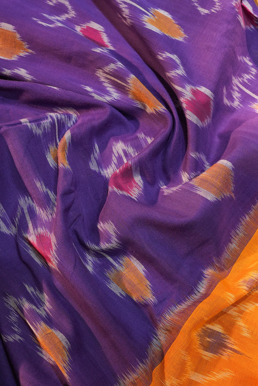 Royal Purple Cotton Saree with Vibrant Orange Ikat Border