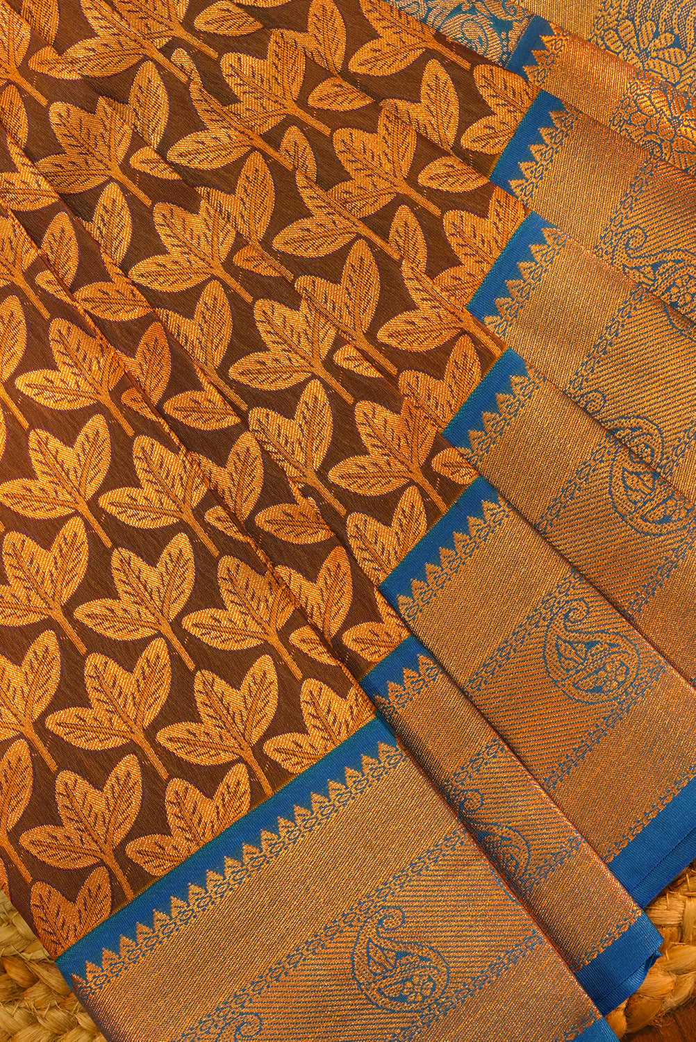 Radiant Orange Kanchipuram Silk Saree with Antique Copper Border
