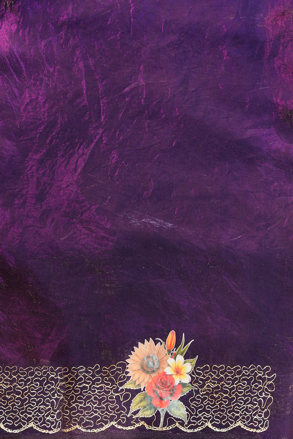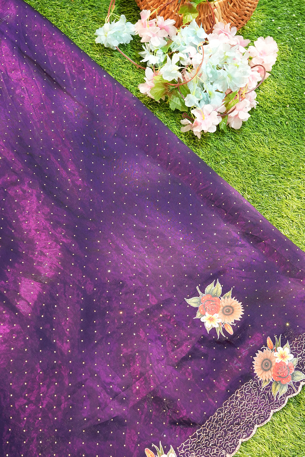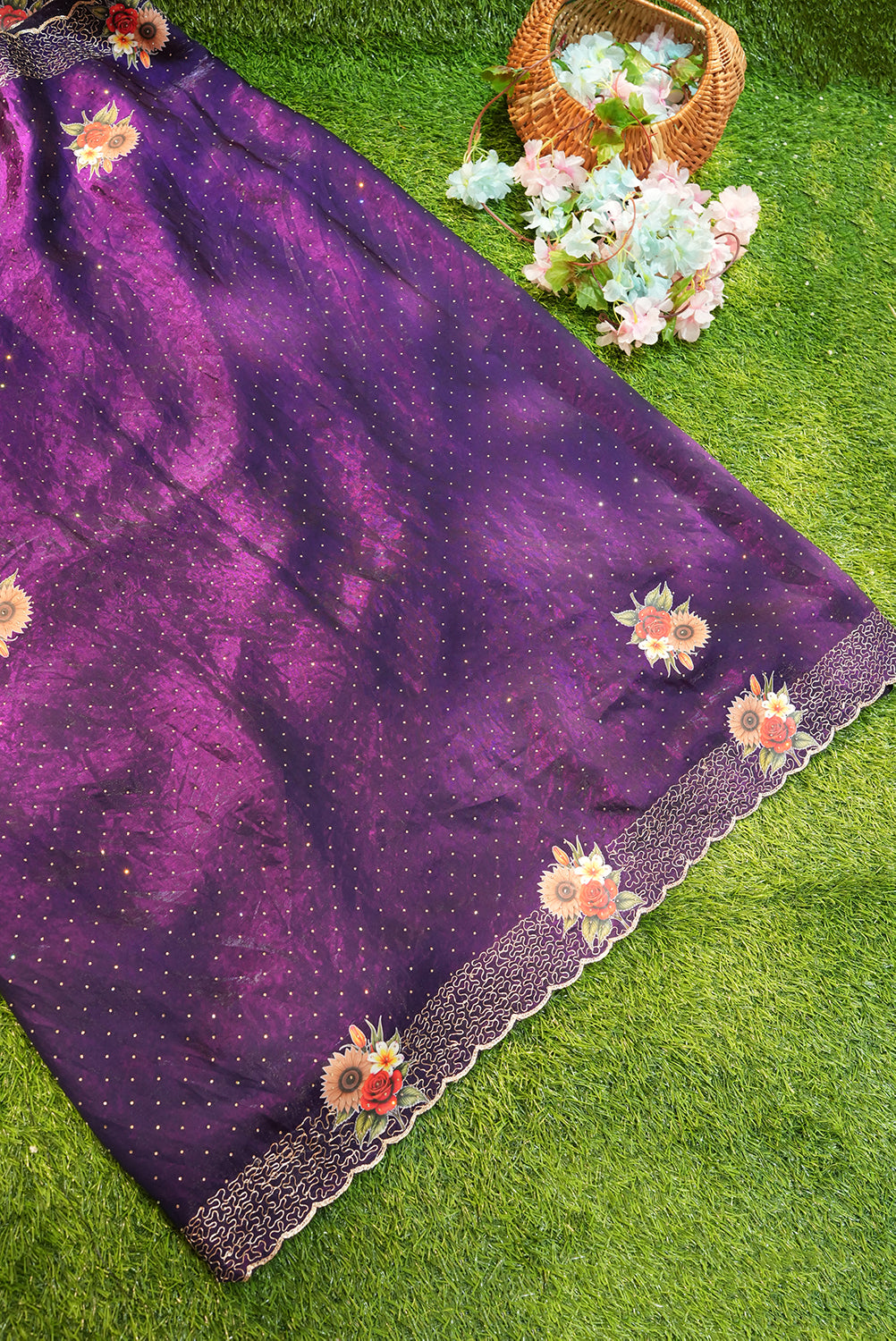 Midnight Purple Designer Saree with Shimmering Stone Work and Scalloped Borders