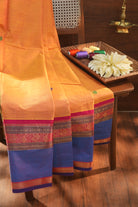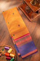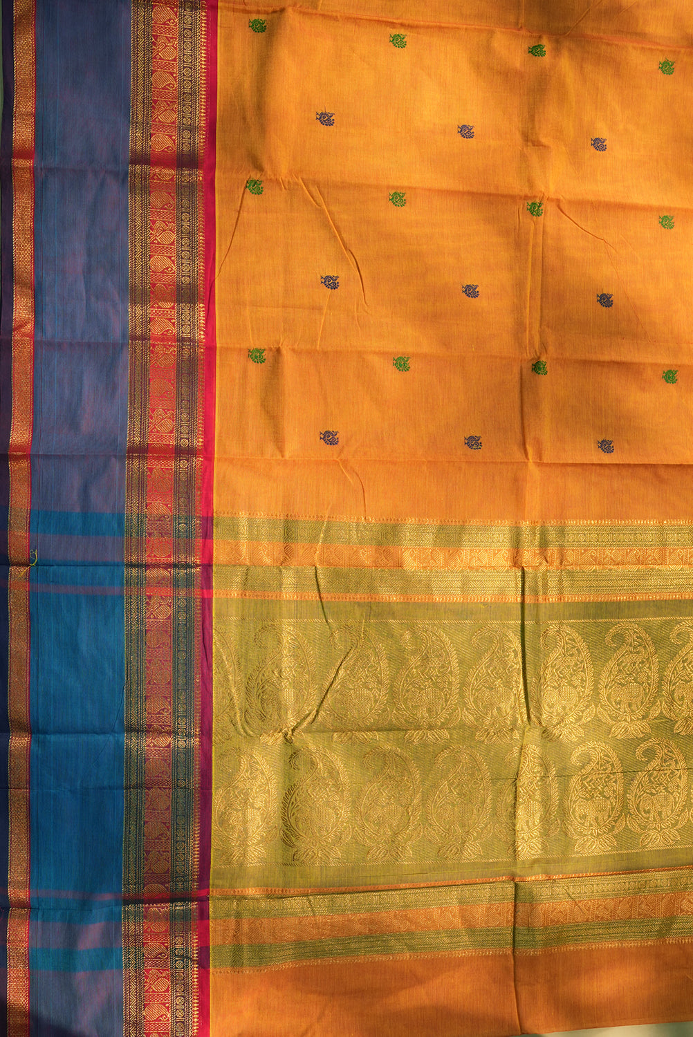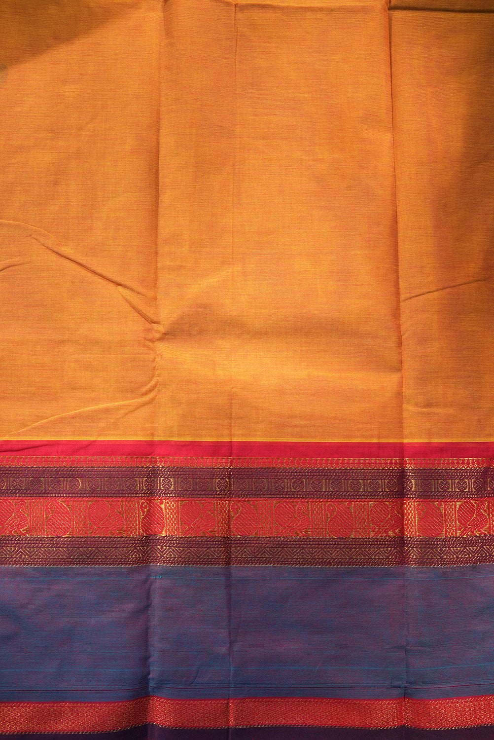 Traditional Mustard Cotton Saree with Multi-Hue Borders