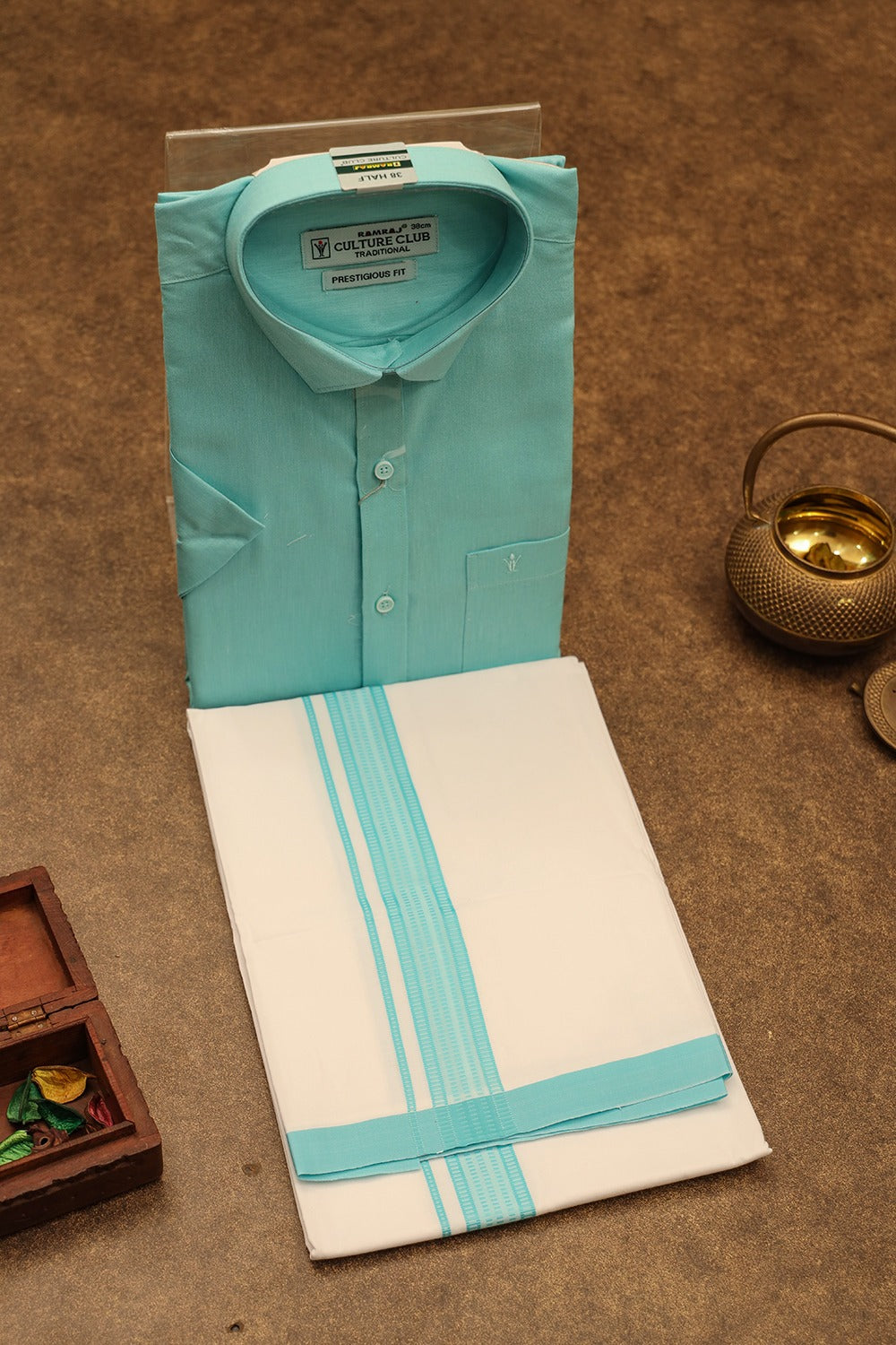 Lite Blue Dhoti Set with Matching Border Comfort and Style Redefined ( SIZE - 38 )