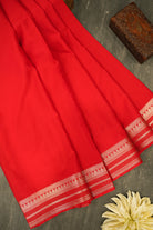 Bold Red Mysore Silk Saree with Gold Zari Border