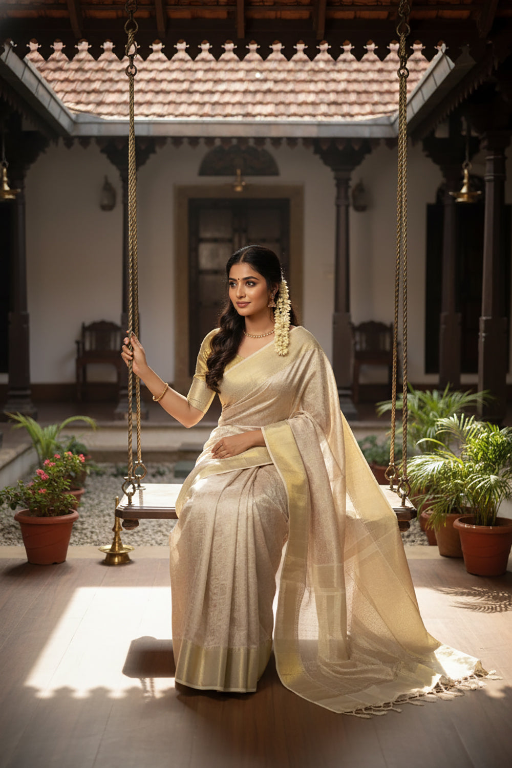 Champagne Gold Silk Saree