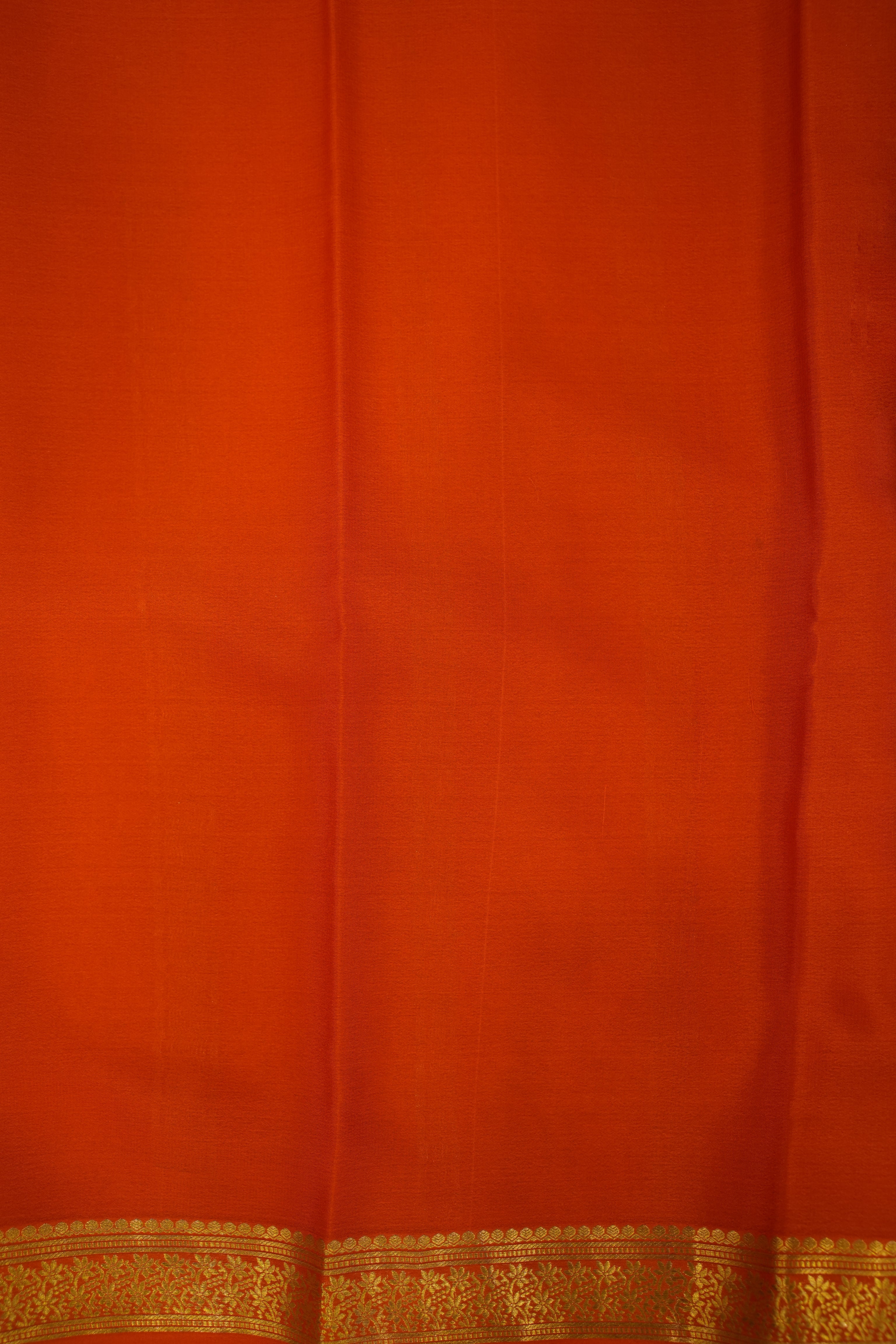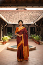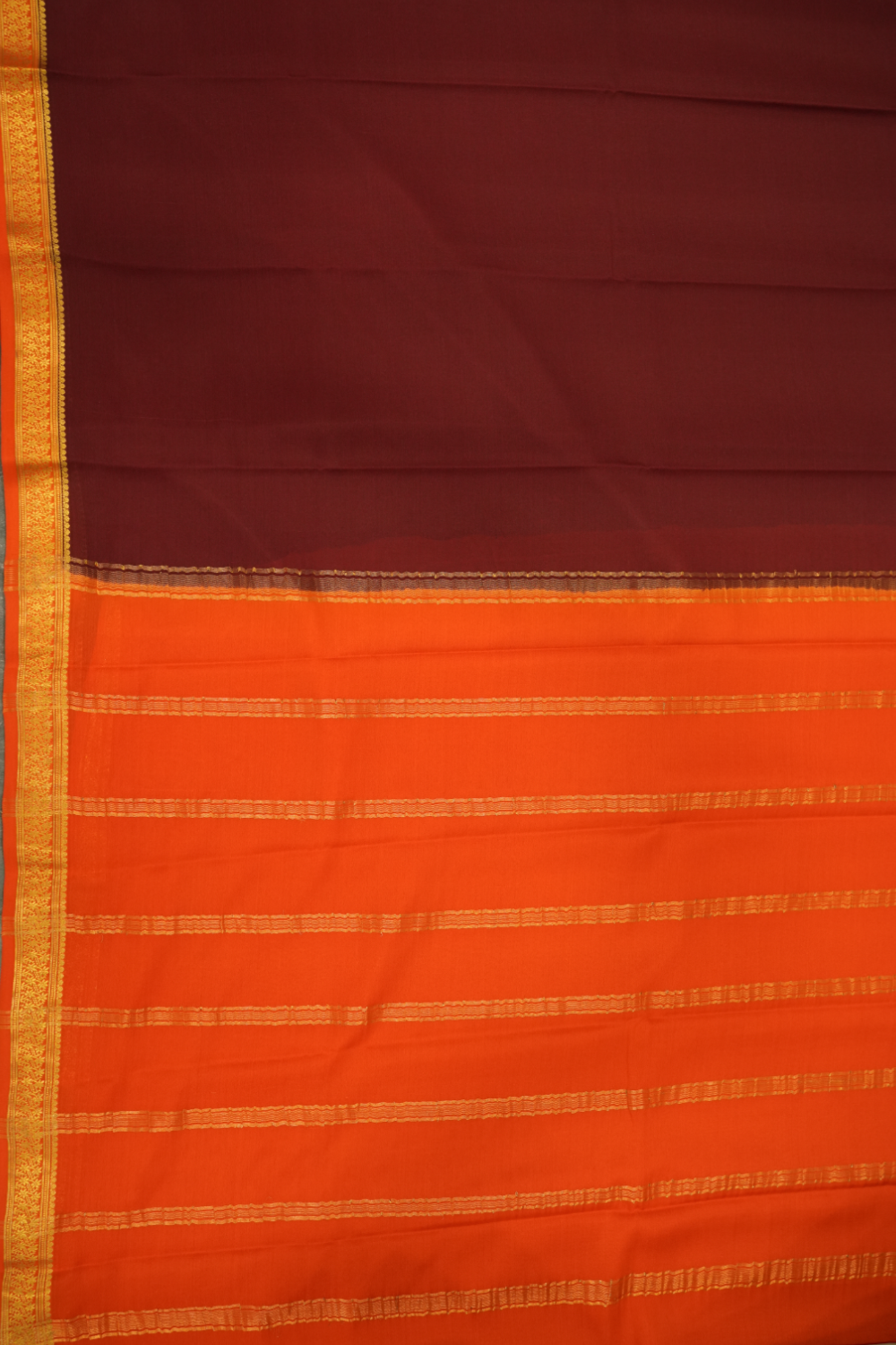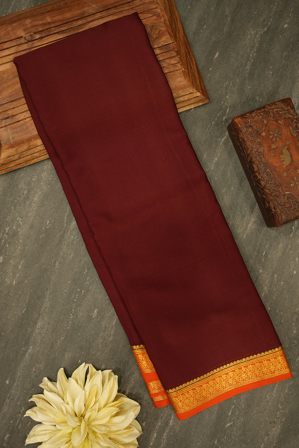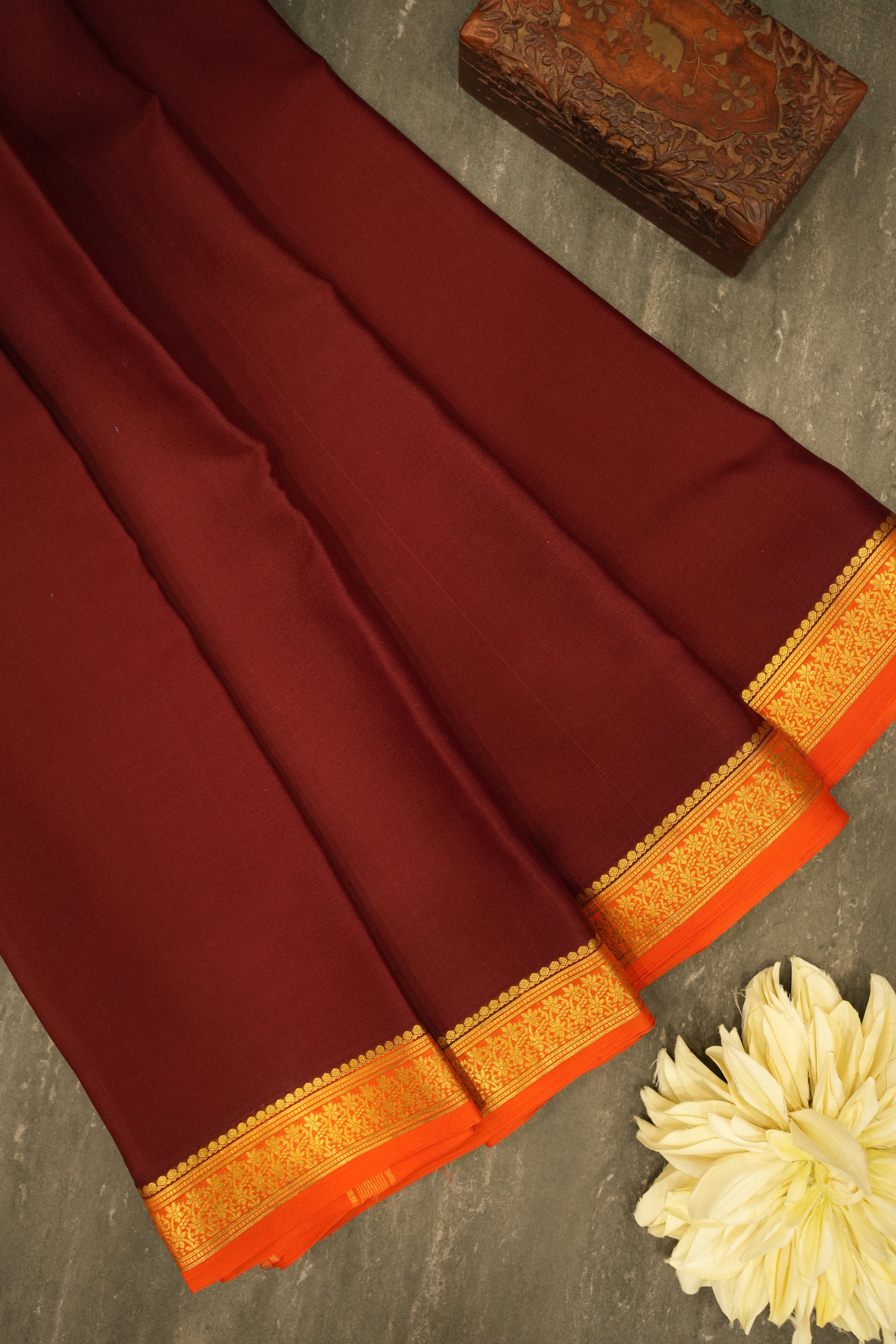 Maroon Mysore Silk Saree with Orange and Gold Border