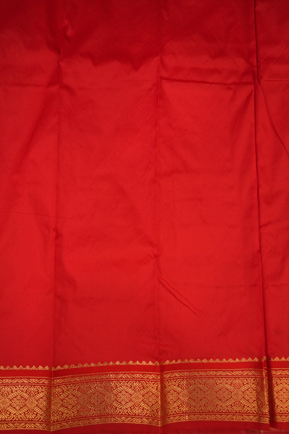 Draped in elegance, this off-white silk saree is a timeless classic. It features a subtle self-design and is beautifully complemented by a striking red border with intricate gold zari work, perfect for any special occasion. Unstitched blouse attached.