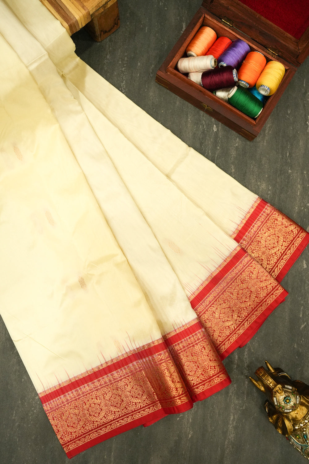 Off-White Kanjivaram Silk Saree