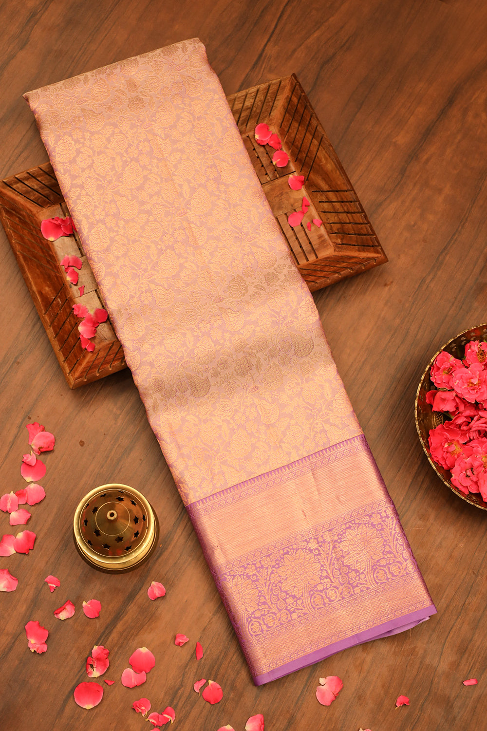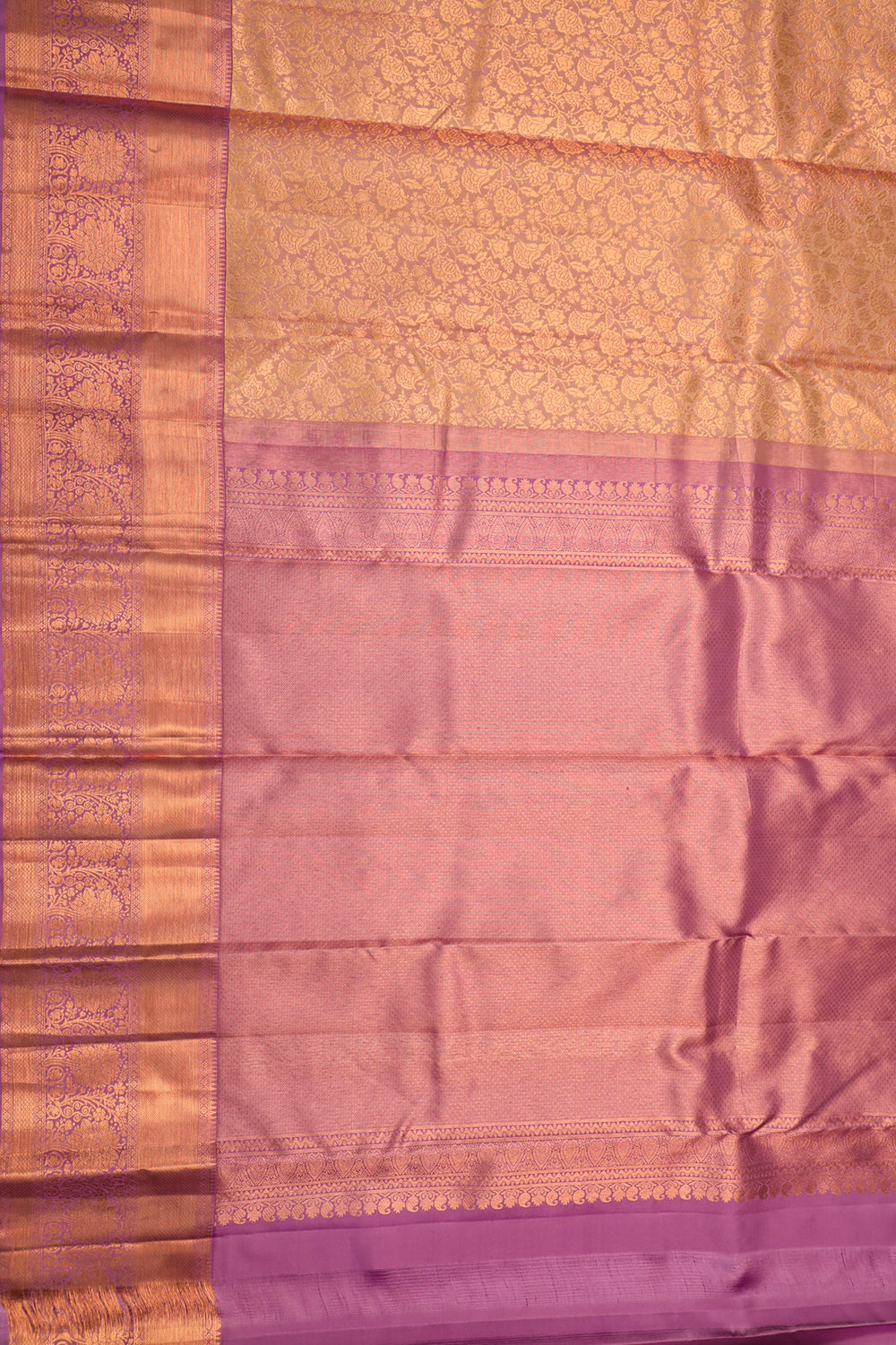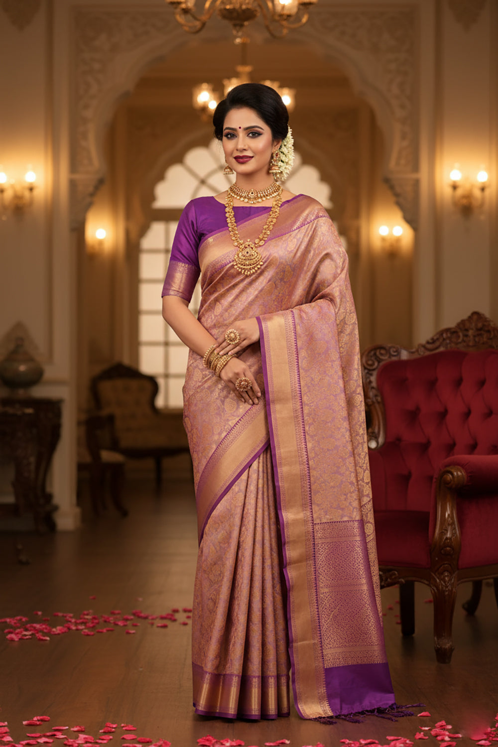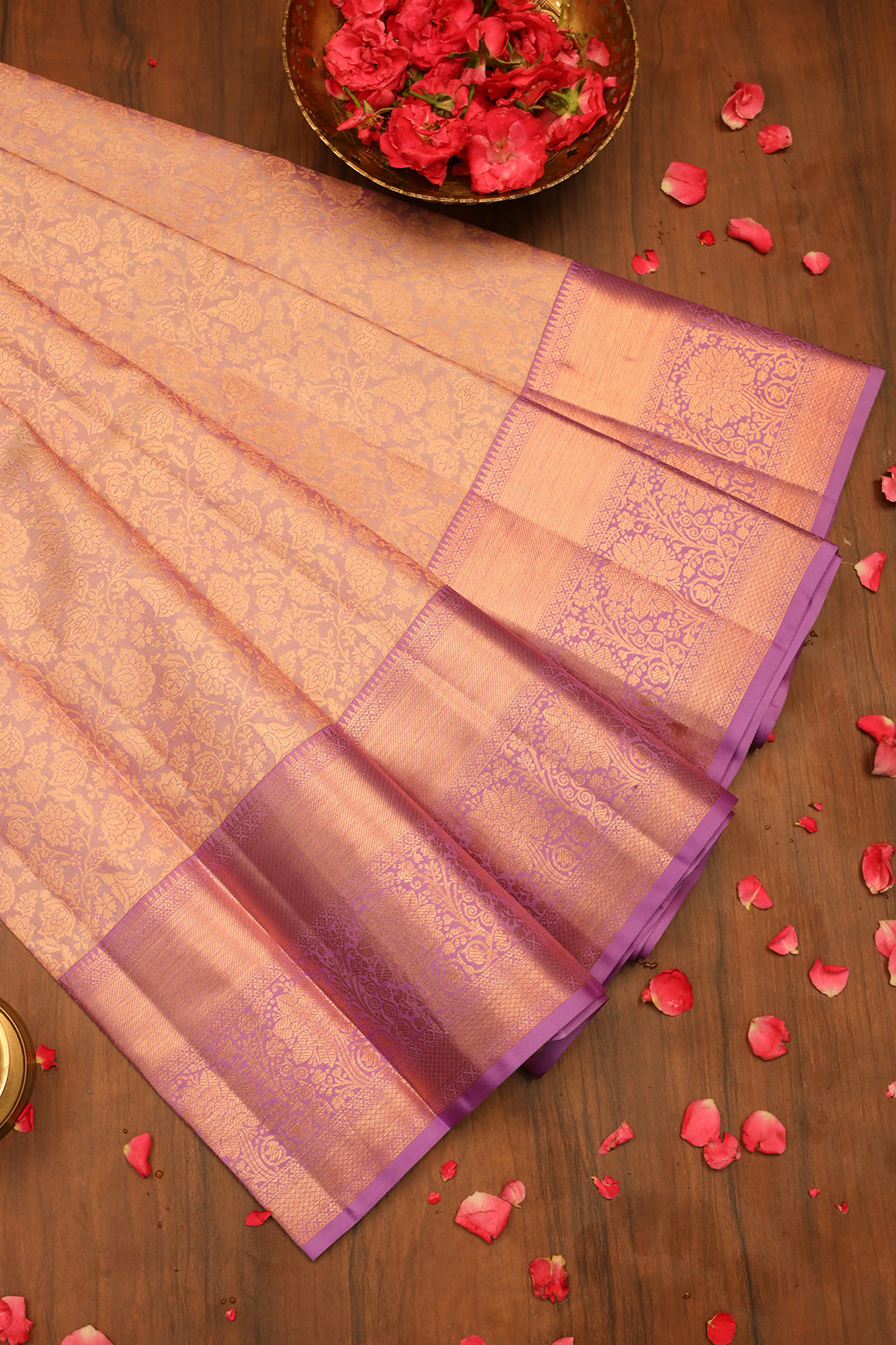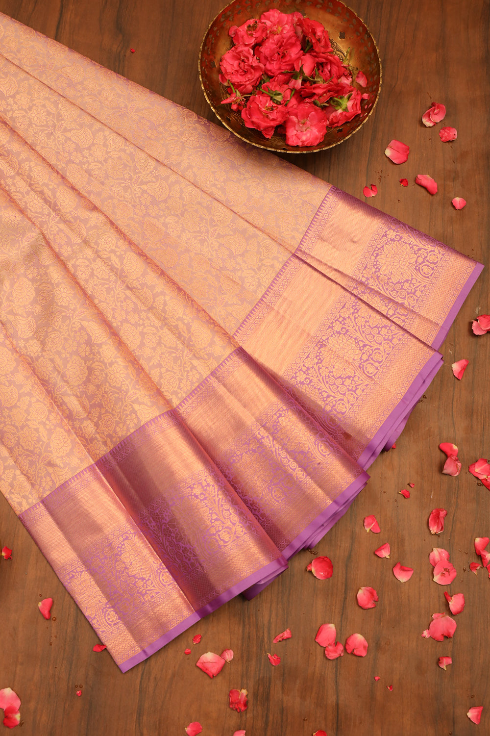 Peach Pink Kanchipuram Silk Saree with Purple Border