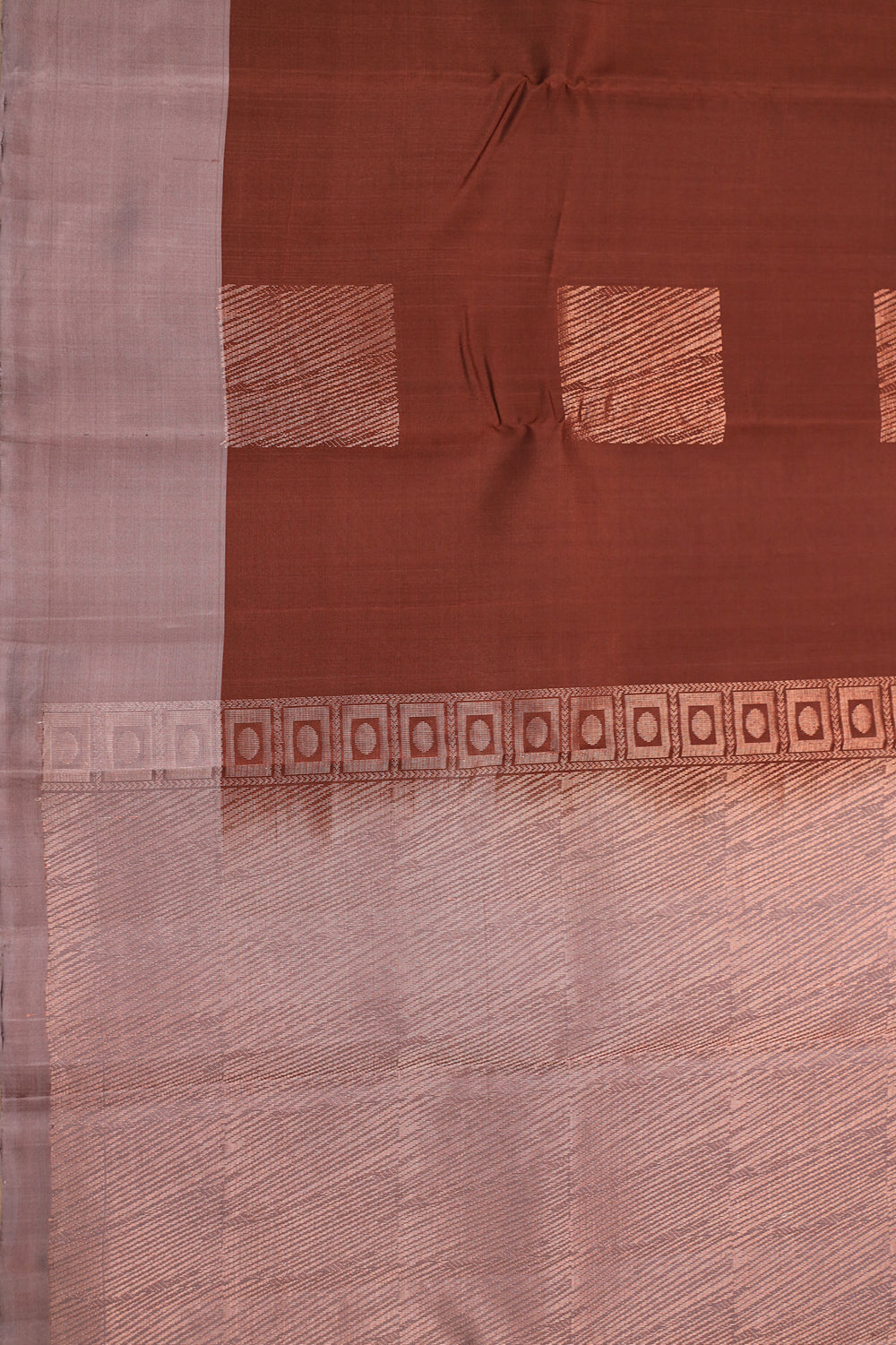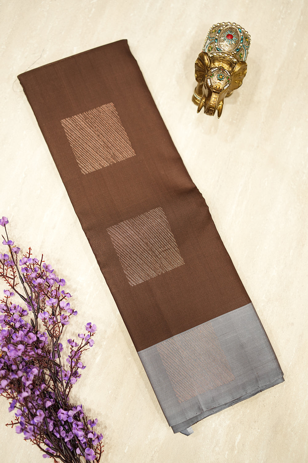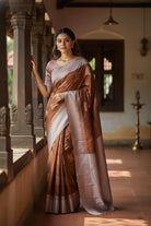 Rich Chocolate Brown Silk Saree with Woven Accents