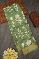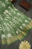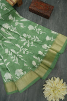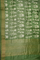 Sage Green Mysore Silk Saree with Delicate White Floral Motif