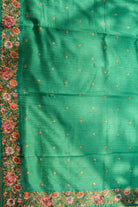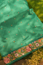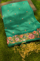 Teal Green Tussar Silk Saree with Intricate Floral Embroidery