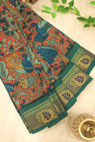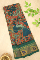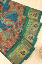 Rustic Red and Teal Peacock Cotton Saree