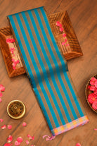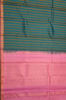 Teal and Bronze Striped Silk Saree with Contrast Border