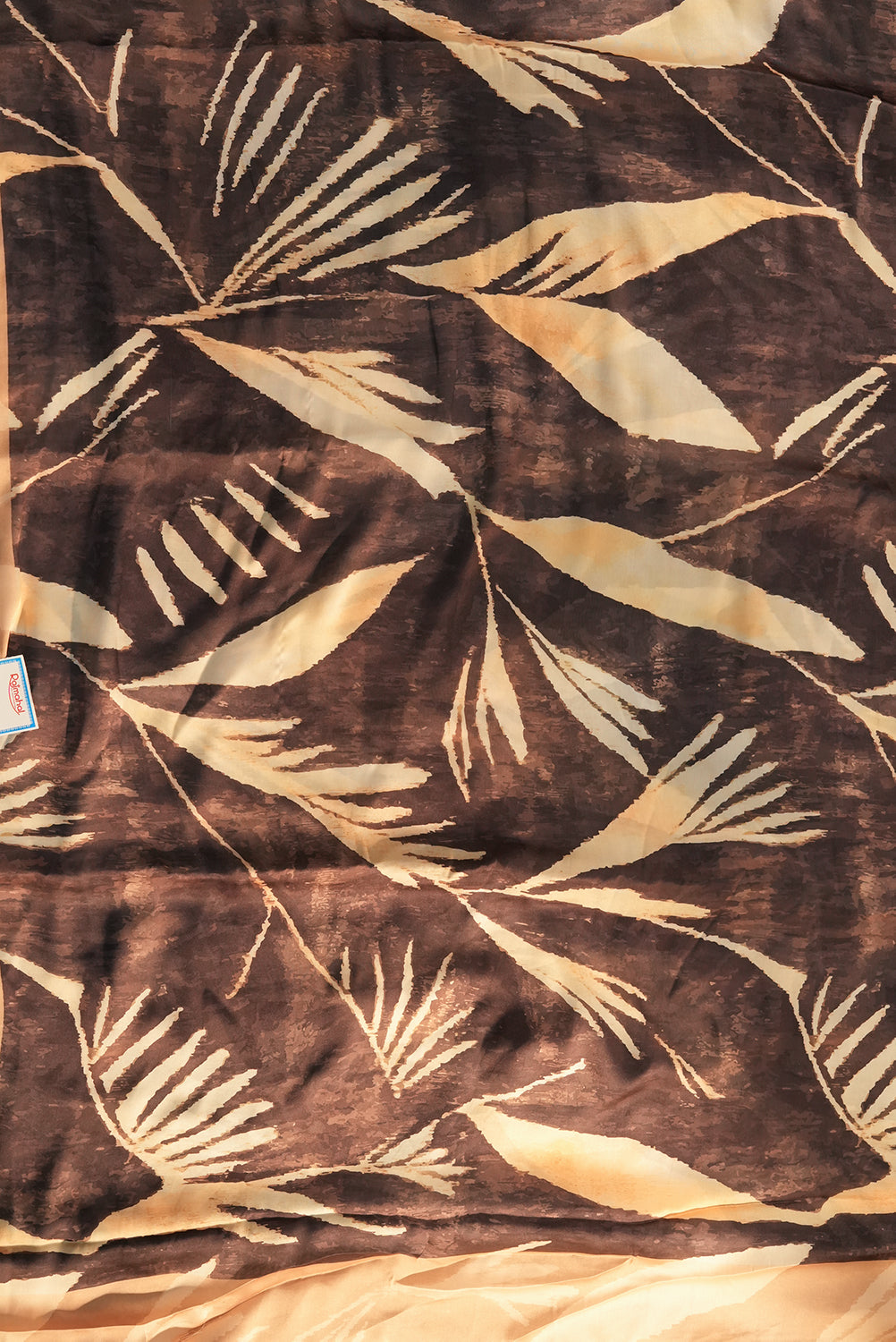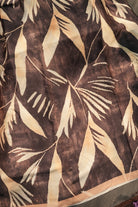 This exquisite Satin Saree blends the fluid grace of high-quality satin with a bold, abstract botanical motif. Featuring a striking contrast between coffee brown and creamy champagne tones, butter-soft drape that flows effortlessly, making it perfect for cocktail parties, gallery openings, dinner events. Unstitched blouse attached.