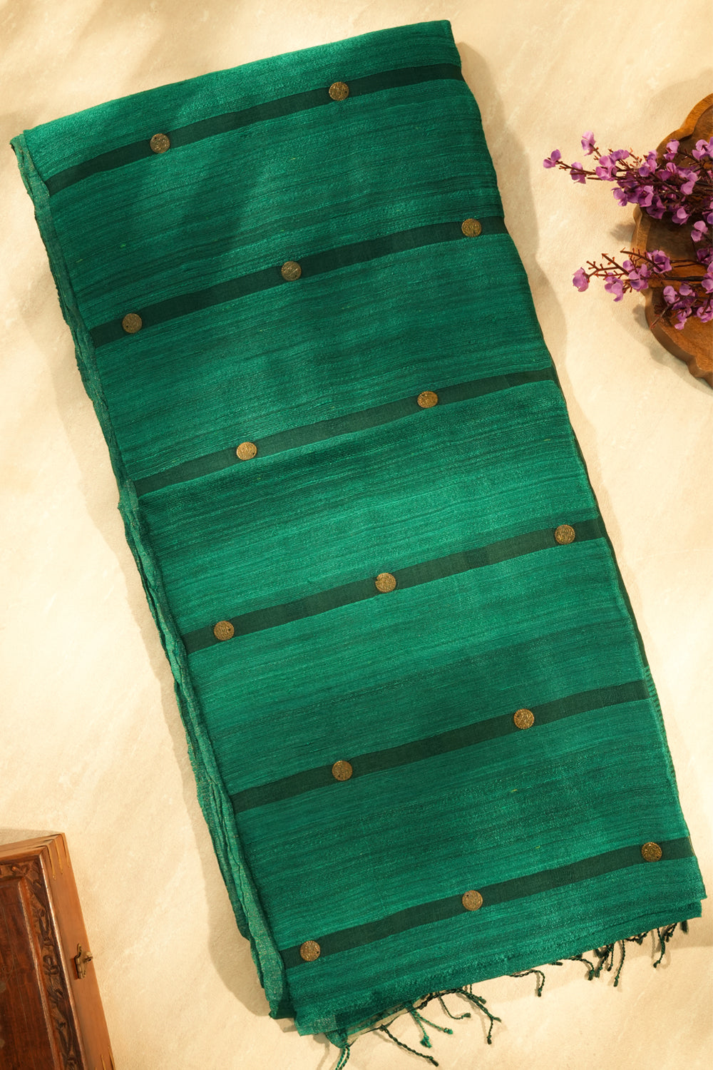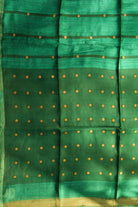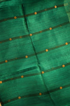 Emerald Green Handloom Tussar Saree with Contrast Stripe and Coins