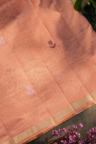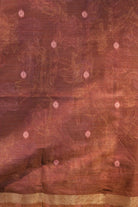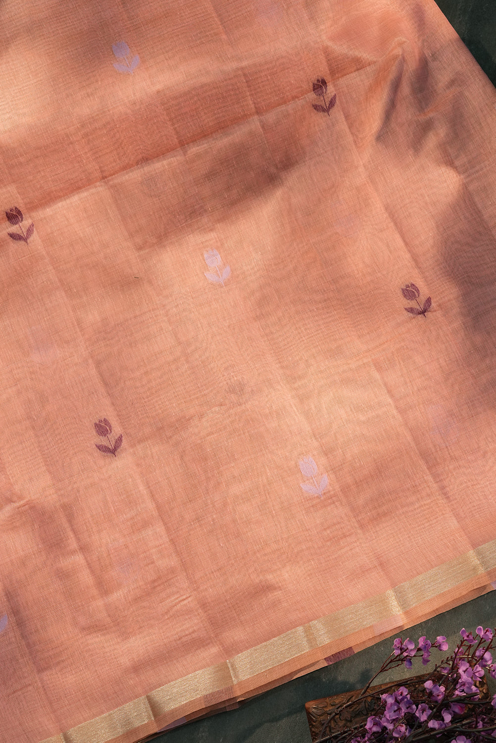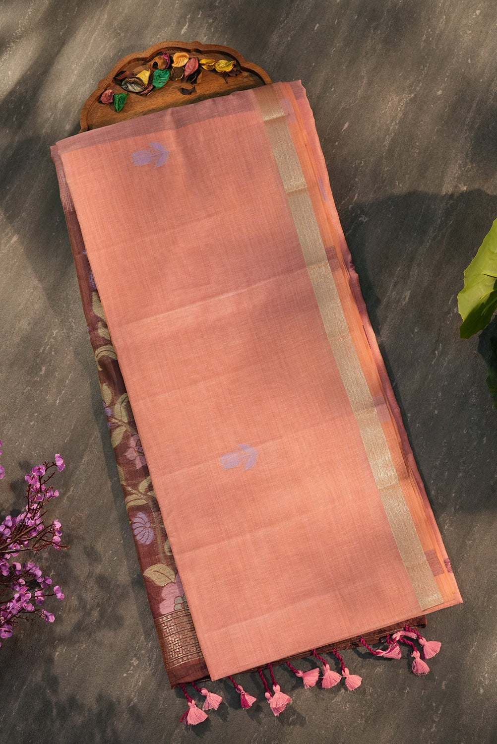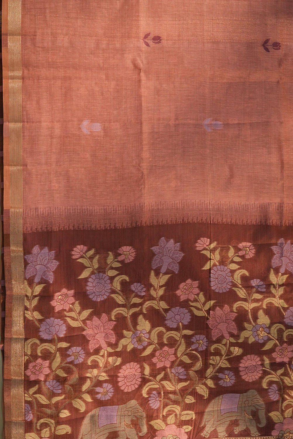 Rose & Deep Cocoa Linen Saree with Floral Jamdani Weave