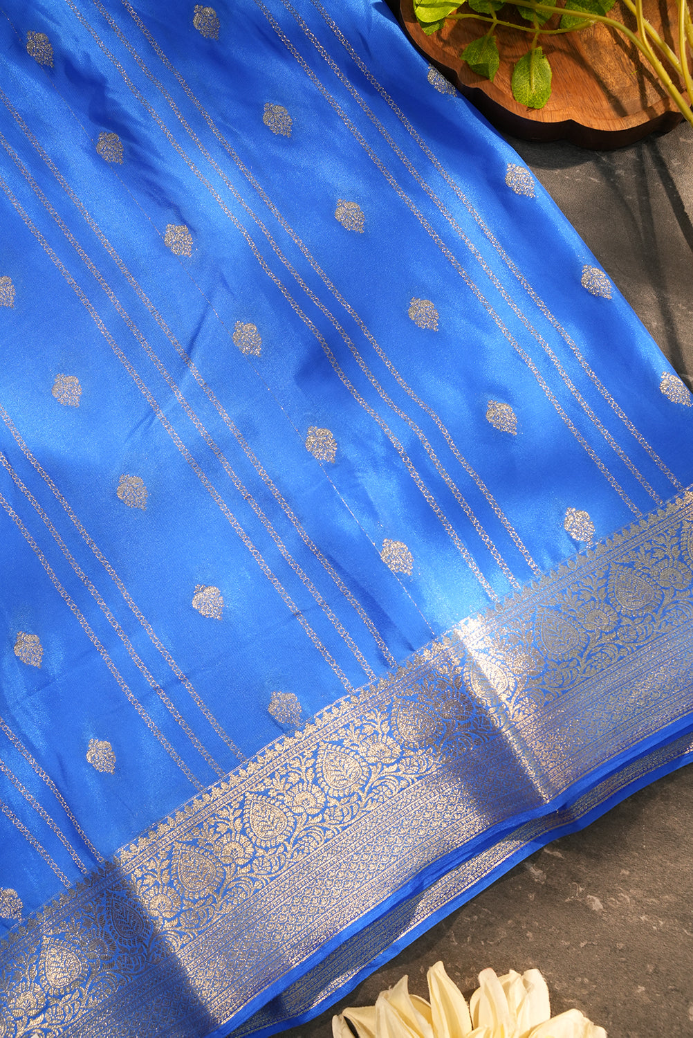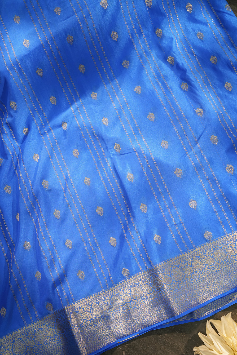 Royal Blue Banarasi Silk Saree with Silver Zari Stripes