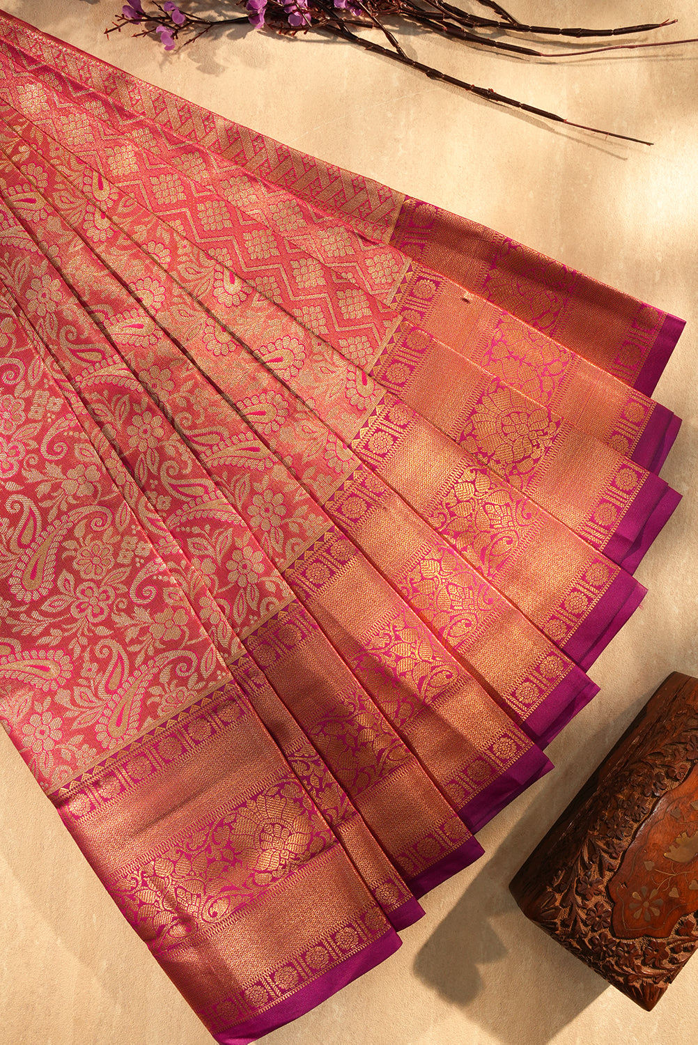 Royal Rani Pink & Gold Zari Silk Saree